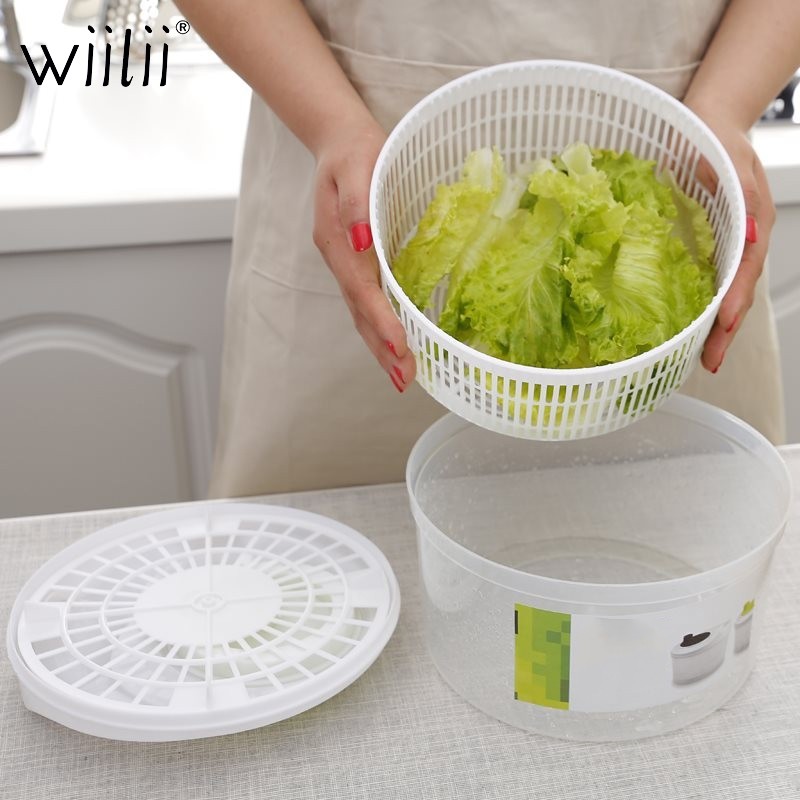 Wiilii مبشرة سلطة دوارة الخس الخضر غسالة مجفف تجفيف هش مصفاة لغسل تجفيف الخضار الورقية أدوات مطبخ