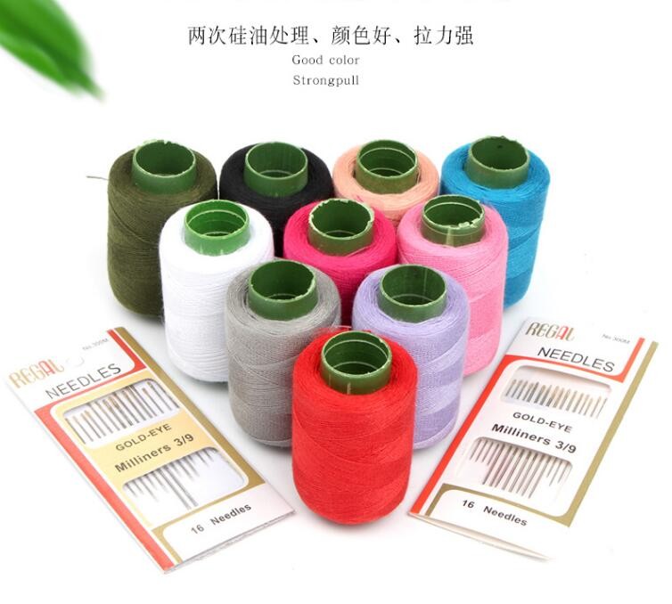 لفافة فردية من ماكينة خياطة منزلية 300 متر ، بكرة فويل صغيرة من 302 خيط ، خيط ملابس مخيط يدويًا باللونين الأسود والأبيض