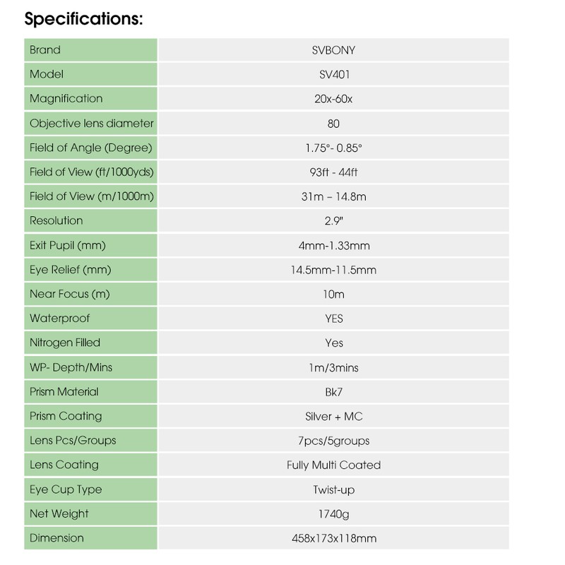 Svbony تلسكوب Sv401 20-60X80 المنكسر نطاق الإكتشاف Bk7 الفضة + Mc المنشور Ipx7 مقاوم للماء مع ترايبود التخييم المعدات