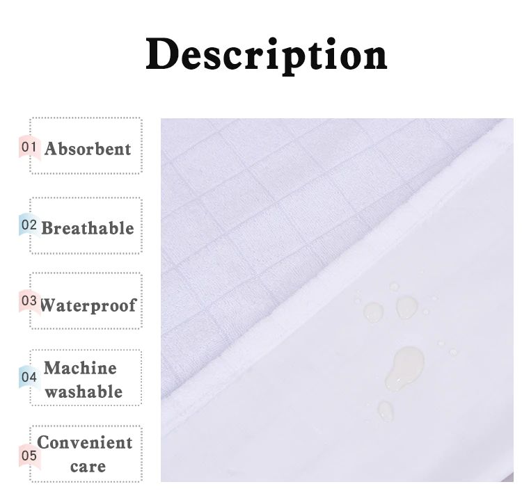 المواد: ألياف الخيزران تيري و تي بي يو مقاوم للماء و غشاء يمكن التنفس من خلاله