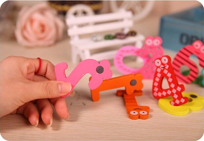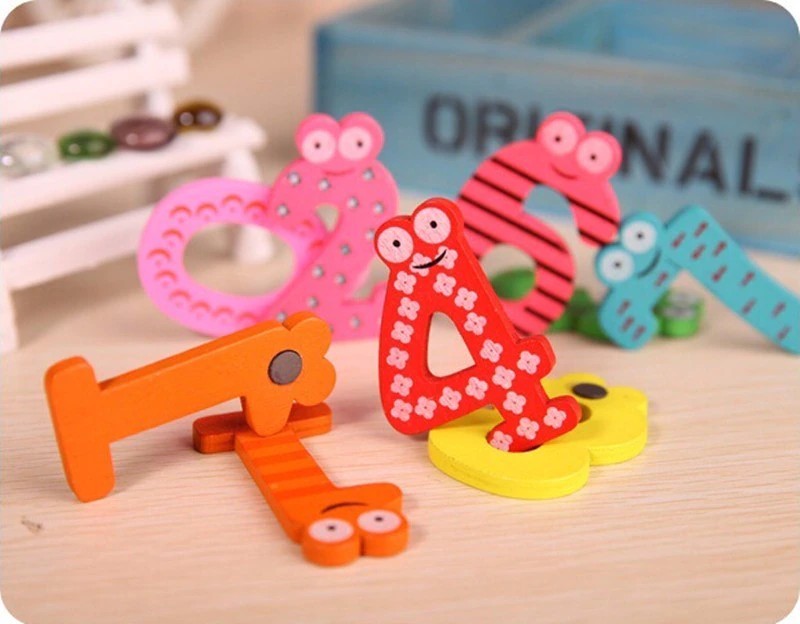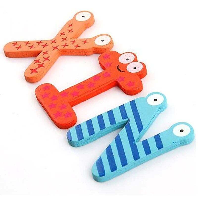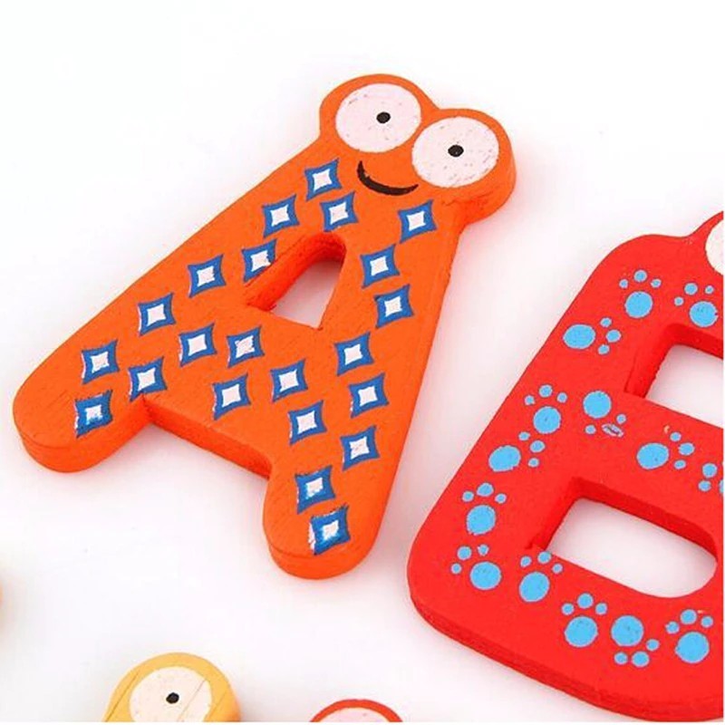 خشبية مغناطيس الثلاجة 26 الأبجدية تطوير الذكاء لعبة أطفال الأطفال المغناطيسي ملصق الفصول الدراسية مكتب السبورة الأداة