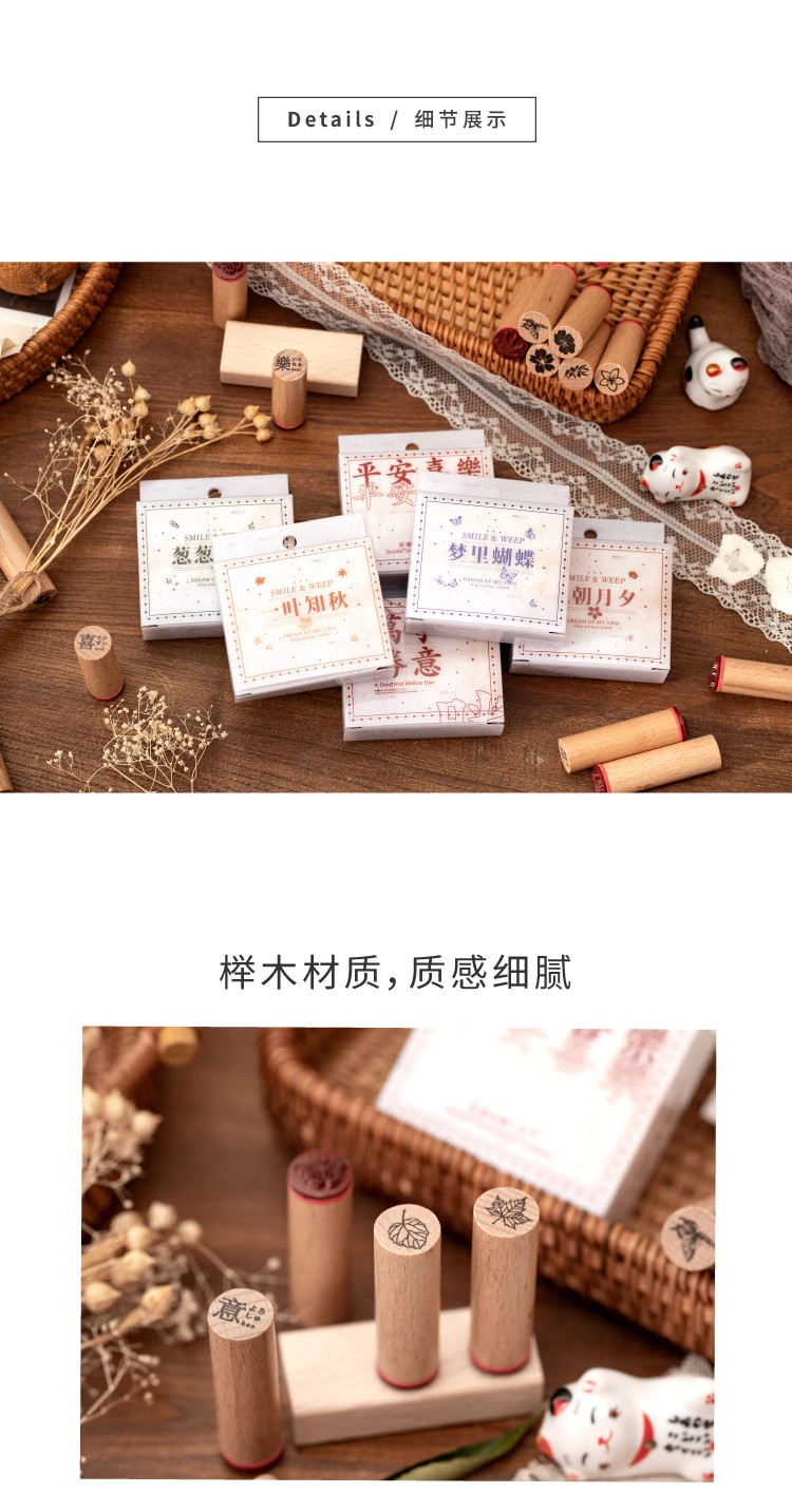 النوع: طوابع مطاطية خشبية المواد: مطاط الخشب نمط: 6 تصميم الحجم: 15 مللي متر * 15 مللي متر * 48 مللي متر الكمية: 4 قطعة/تصميم الوزن: 46 جم الحزمة: محاصر حجم العبوة: 65*20*55 مللي متر