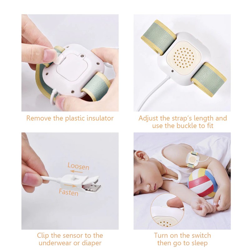 This is a very humanized design product which suitable for babies potty training. It comes in an armband with an alarm, which has high sensitivity of moisture. Clip the sensor to where the moisture will be detected, and it will alarm you and your baby, no more bed wetting, you can have restful nights and less laundry after having such a good item.