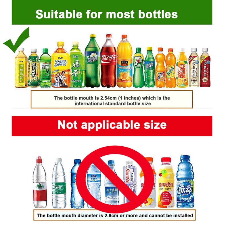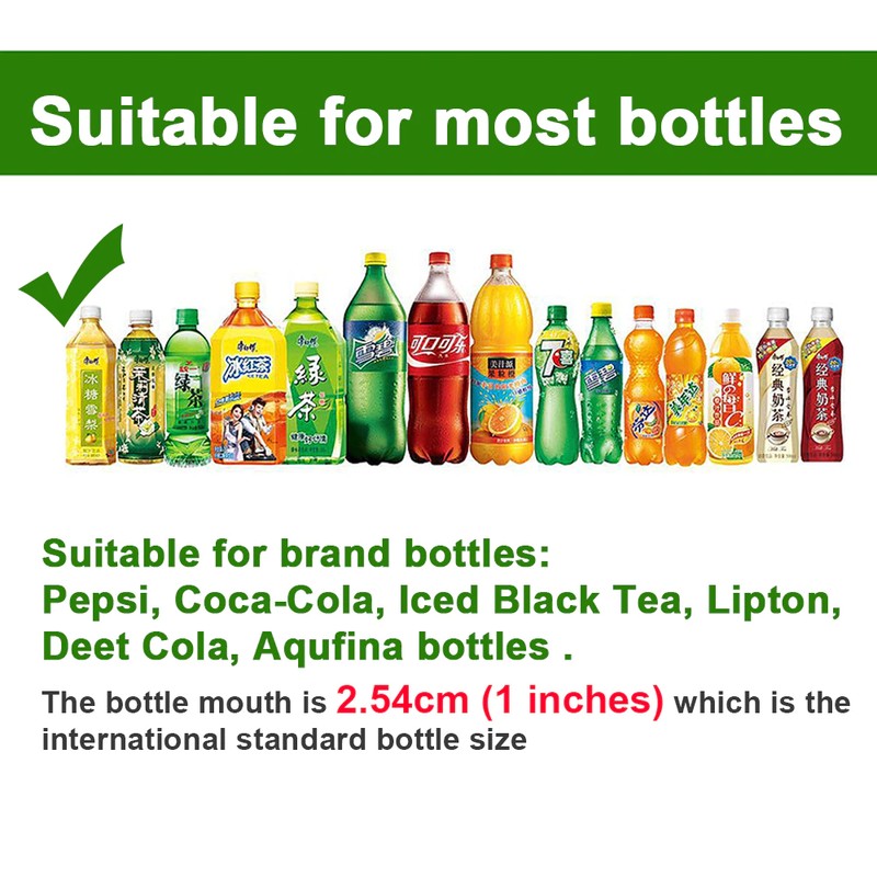 Suitable for brand bottles:Pepsi, Coca-Cola, Iced Black Tea, Lipton, Deet Cola, Aqufina bottles .