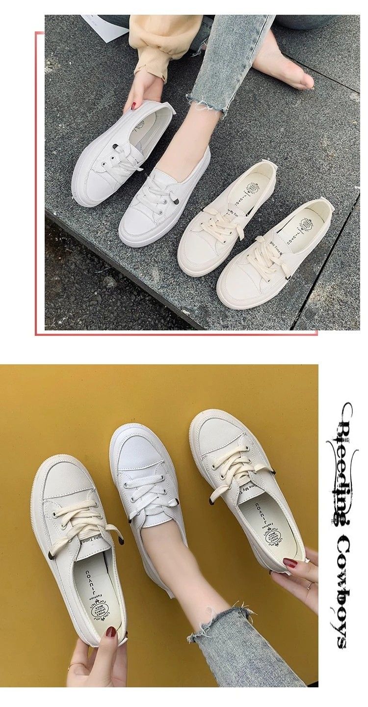 Autumn Women'S Shoes Fashion New Women'S Pu Leather Shoes Women'S Breathable Lovely Flat Sole Casual White Sports Shoes
