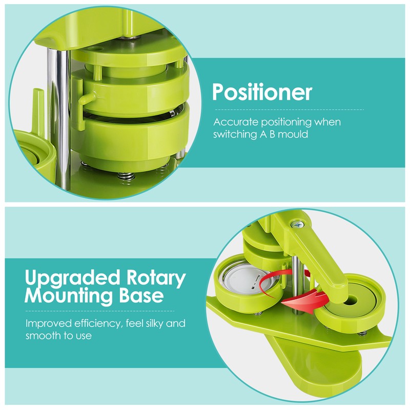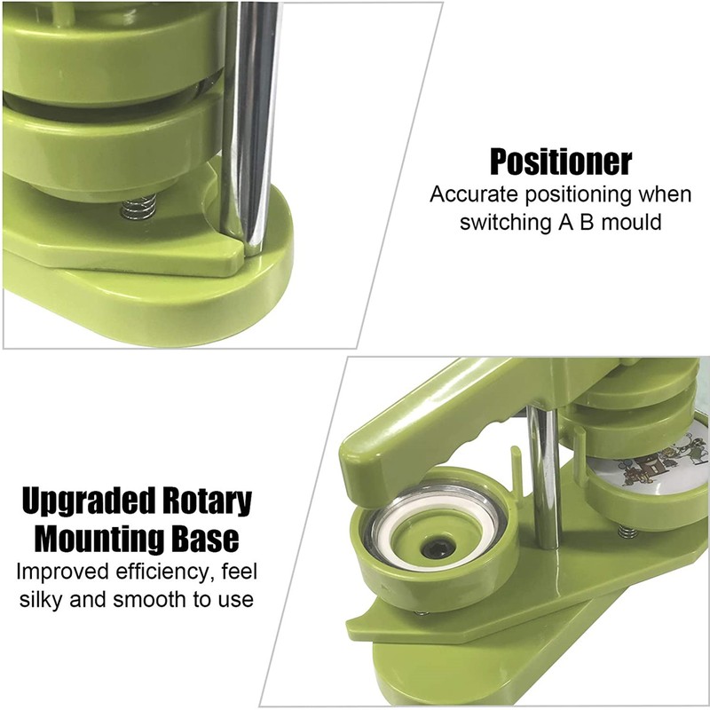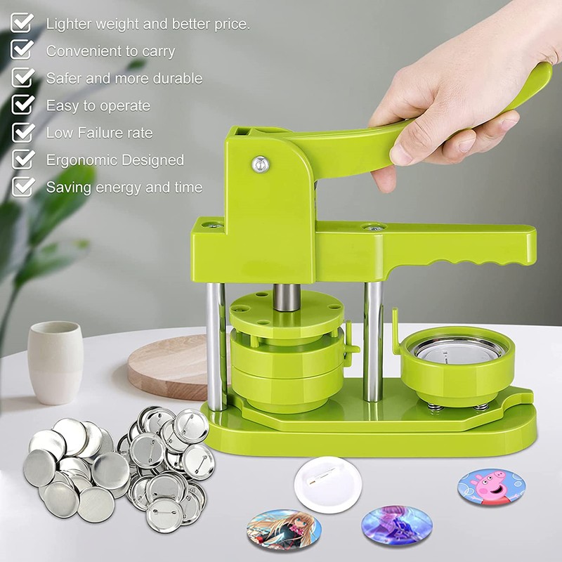DIY 25/32/37/44/58mm badge making machine adopt high strength engineering plastics, machine body and mold is integrated, features light weight, long life span, easy operation, stainless.