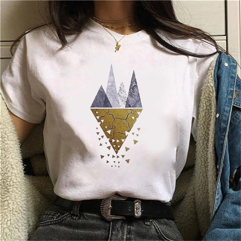Beautiful Geometry Printed T Shirt Women 90S Graphic T-Shirt Harajuku Tops Tee Cute Short Sleeve Oversized Tshirt Female Tshirts