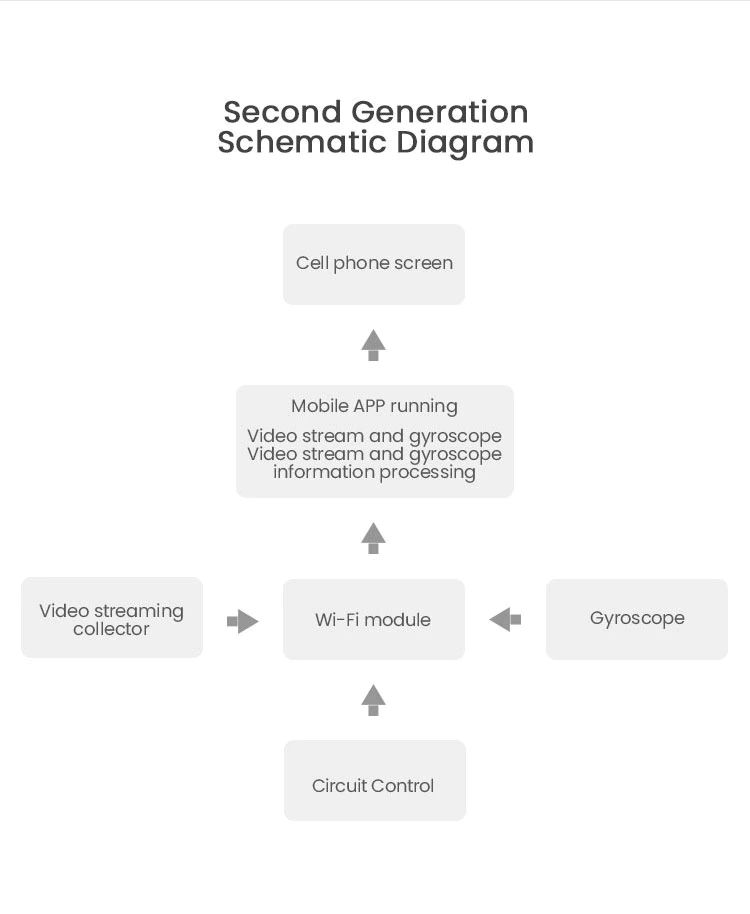 Connection: Wireless WIFI Pixels: 3 Mega-pixels Lens diameter: 15-20mm Battery capacity: 200mAh Inpute current: DC 5V Charging time: 1 hours Image transmission rate: 30fps