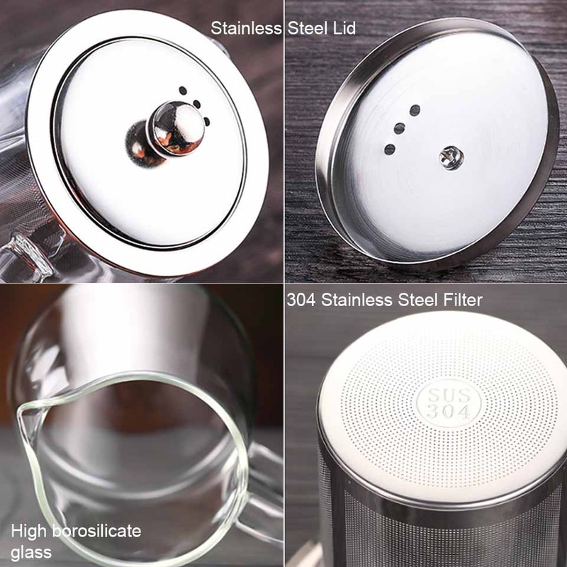BORREY Tea Infuser Pot Heat-resistant Glass Teapot Cup With Filter Flower Tea Pot Oolong Puer Kettle Glass Coffee Tea Pot 1300Ml