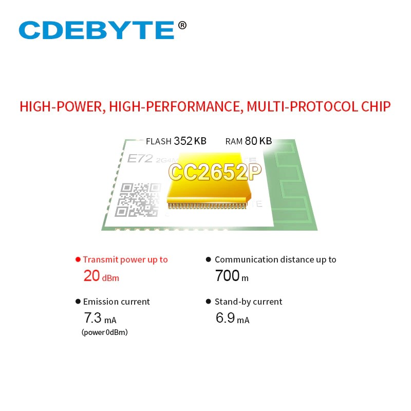 Cc2652P Wireless Module Zigbee Bluetooth 2.4Ghz 20Dbm Soc Ebyte E72-2G4M20S1E Transceiver And Receiver Pcb/Ipx