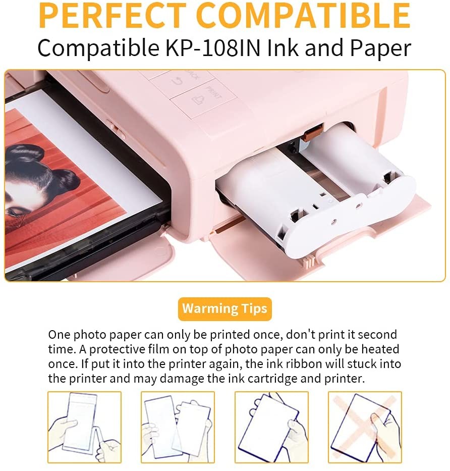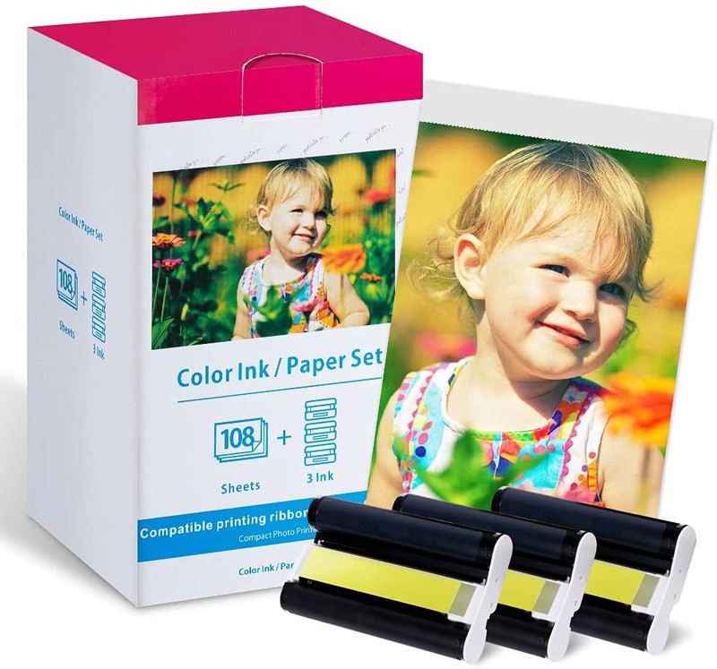 Compatible For Canon Kp-108In Color Ink And Paper Set 4 X 6 Or Rp-108 For Selphy Cp1300 Cp1000 Cp1200 Cp910 Cp900 Photo Printer