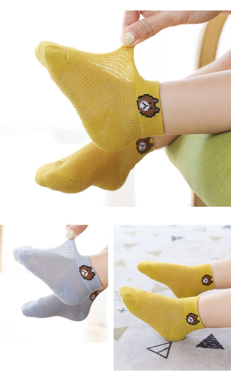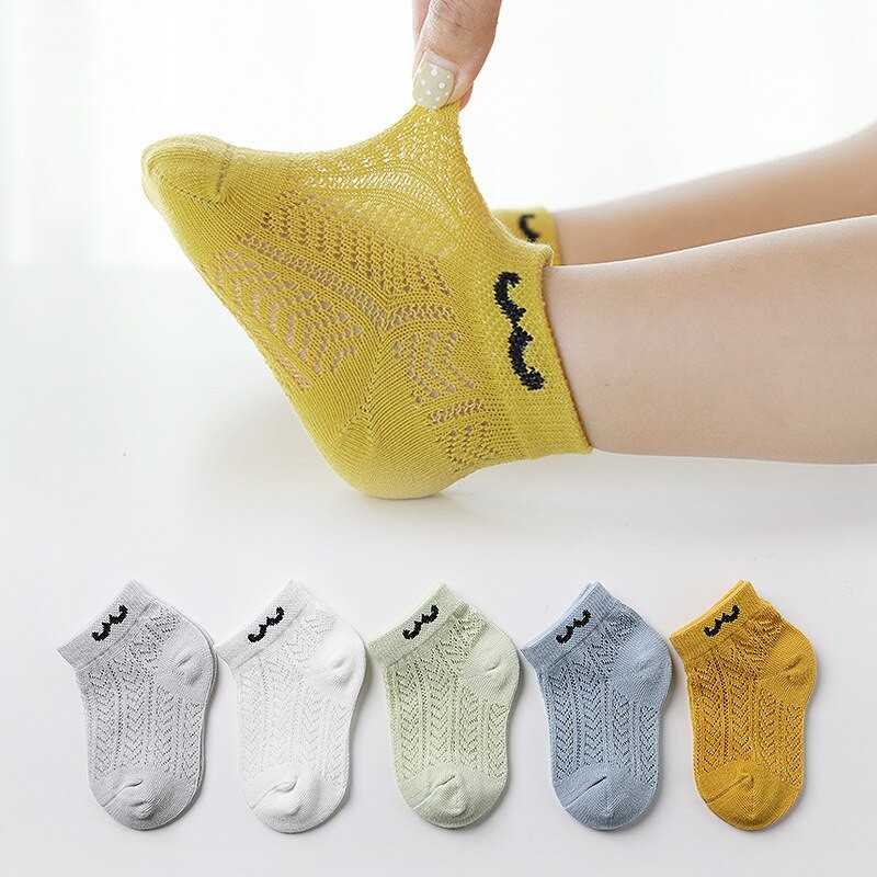 Algodão Bebê Meias Curtas 5 Pares Da Criança Meninos Meninas Verão Malha Fina Meias Crianças Coloridas 5 Pares Wmf043