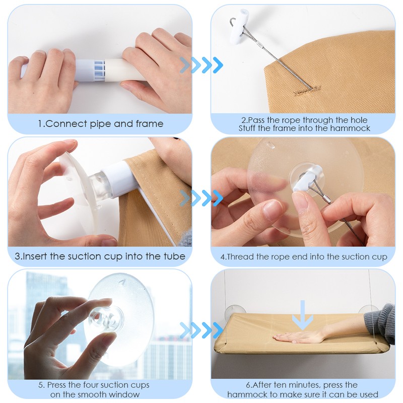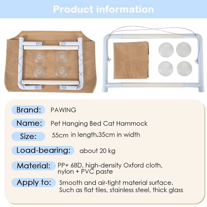 4.The bed is designed to attach directly to the window with four sucker cups (no hardware or tools needed.)
