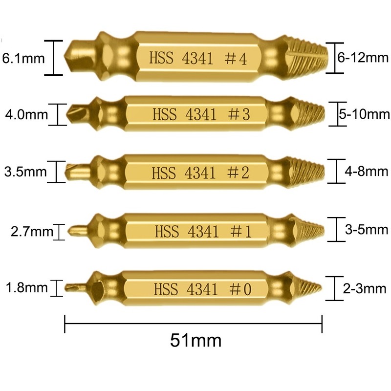 5 pieces/set of A/B screw extractor (specific size as shown in the figure)