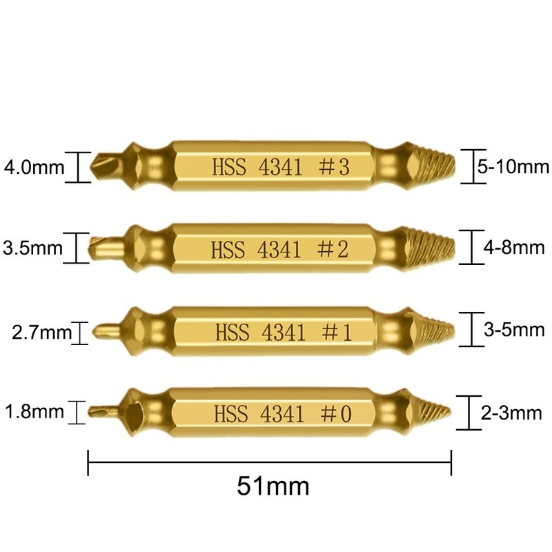 4 pieces/set of A/B screw extractor (specific size as shown in the picture)