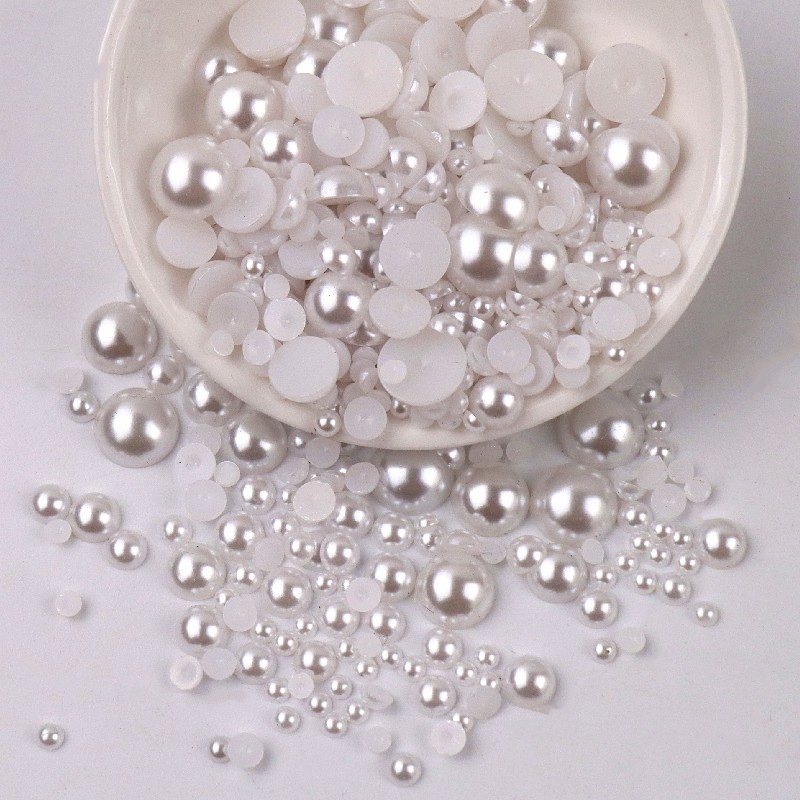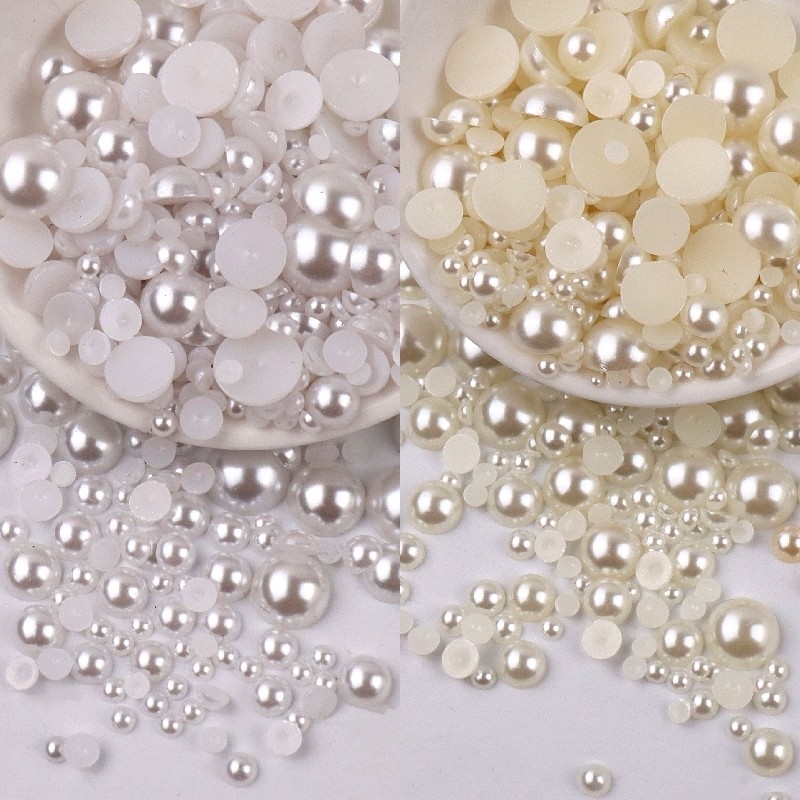 1, 5 Mm-14Mm Beige Abs Nachahmung Perlen Beinahe Runde Flatback Harz Perle Kleber Auf Strass Perlen Nail Art Handwerk Diy Dekoration