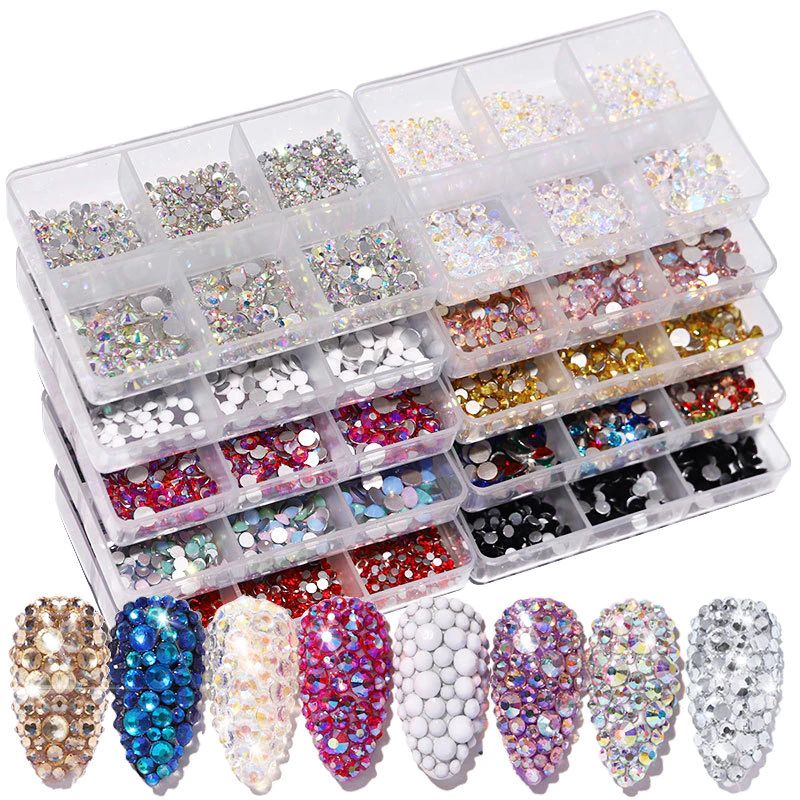 1 Box Kristall Nail Art Strass Gold Silber Klar Alle Farbe Flachen Boden Gemischt Form Diy Nail Art 3D Dekoration In 6 Zelle Topf