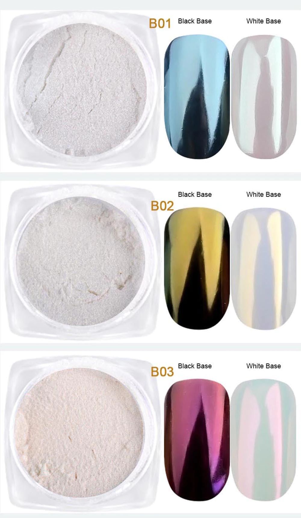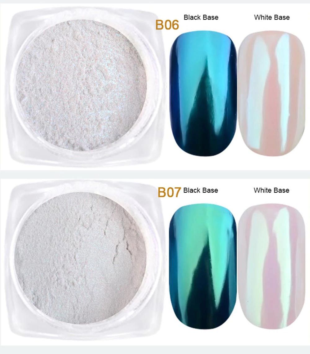 1 Box Perle Nagel Glitter Pulver Neon Schimmer Spiegel Meerjungfrau Tauch Weiß Lila Nagel Chrom Pigment Staub Polnischen Decor Glb01-07