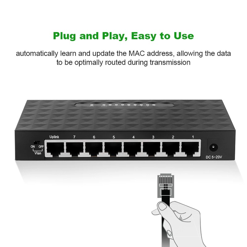 10/100/100 0Mbps 8 Port Gigabit Netzwerk Schalter Gigabit Ethernet Netzwerk Switcher Rj45 Lan Hub Hohe Leistung Ethernet Eu-Stecker