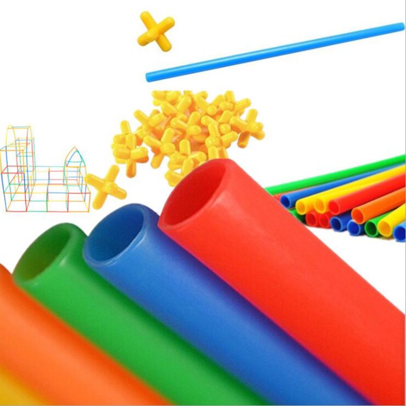 100-700 Stücke Kunststoff 4D Stroh Bausteine Joint Lustige Entwicklung Spielzeug Geometrische Form Block Für Baby Bildung Spielen Spielzeug
