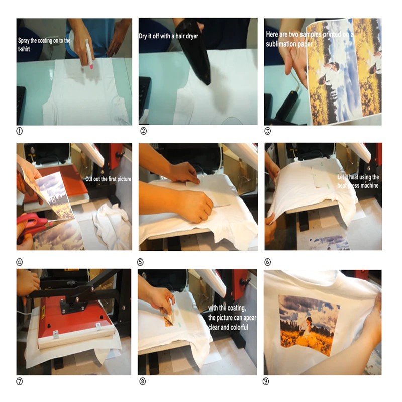 Diese sublimation beschichtung kann nur verwendet werden auf weichen materialien, wie baumwolle T-shirt, leder, etc. es ist nicht geeignet für harte materialien wie metall fliesen.