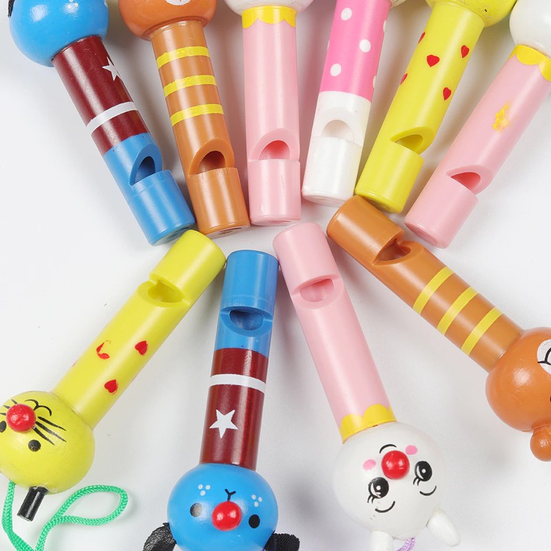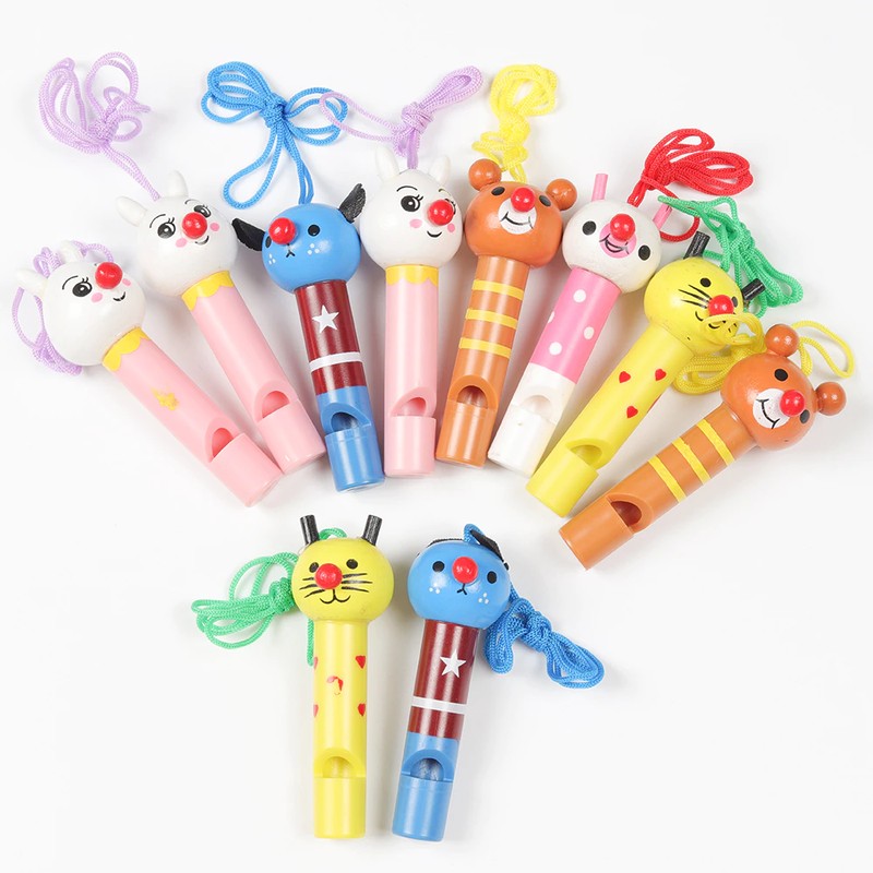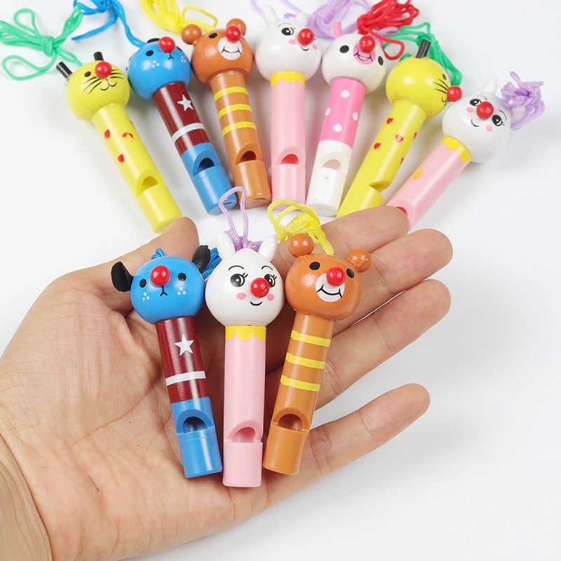 10Pcs Nette Mehrfarbige Holz Pfeifen Kinder Geburtstag Party Favors Dekoration Baby Dusche Noice Maker Spielzeug Goody Taschen Pinata Geschenke