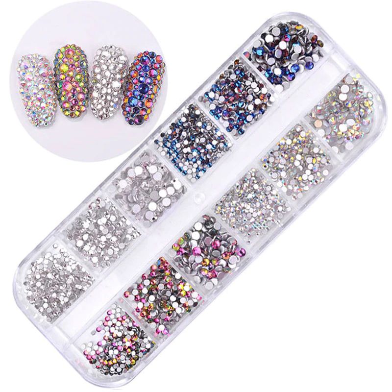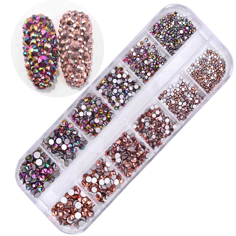 12 Boxen/Set Von Ab Kristall Strass Diamant Edelstein 3D Glitter Nail Art Dekoration Schönheit