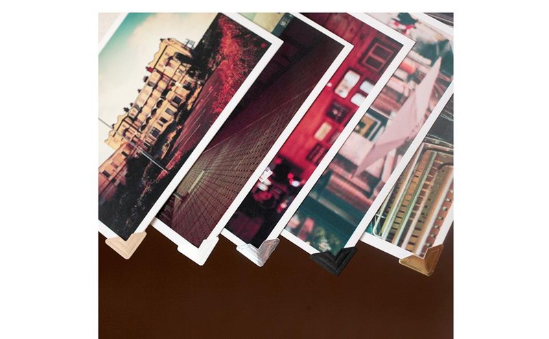 Erste setzen die ecke aufkleber auf die zwei ecken der foto.