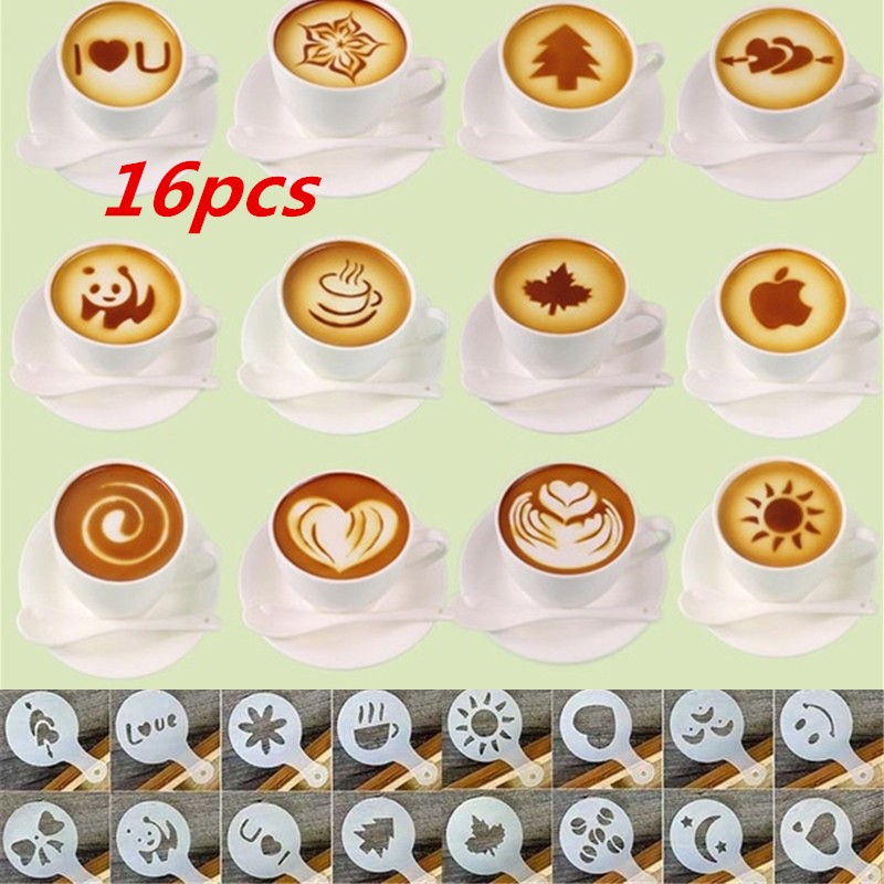 Paket Enthalten: 16 Pcs verschiedenen stilen kaffee schablonen