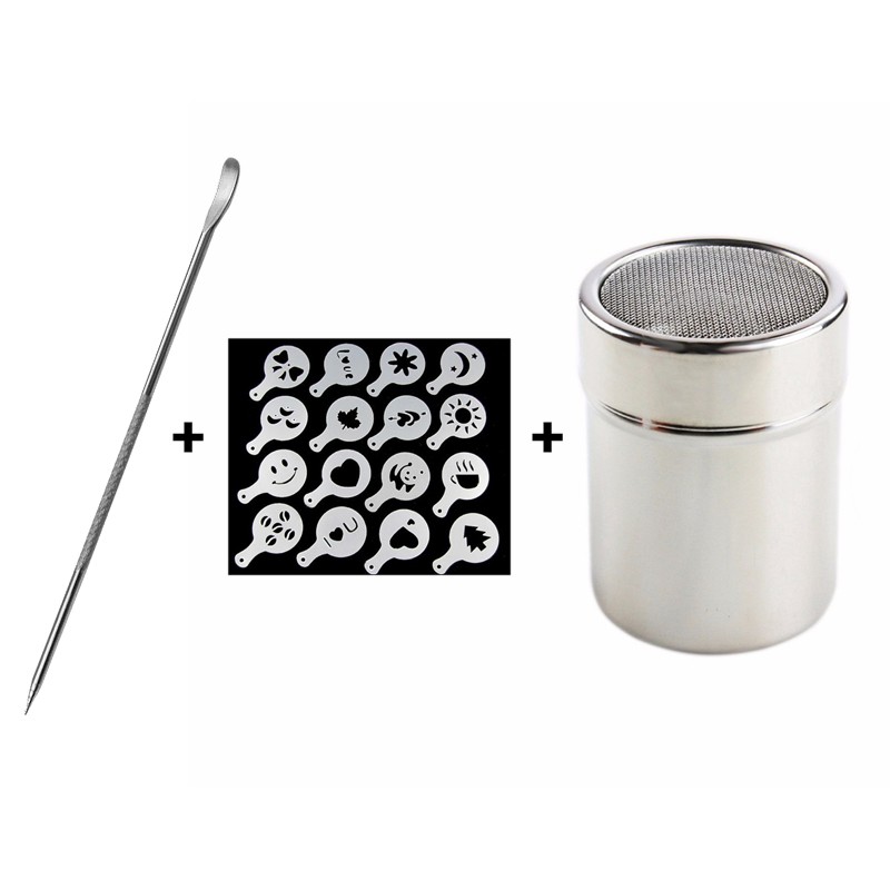 16Pcs Kunststoff Cafe Schaum Vorlage Barista Schablonen Form Kaffee Kunst Nadeln Edelstahl Latte Girlande Nadel Pulver Streuen