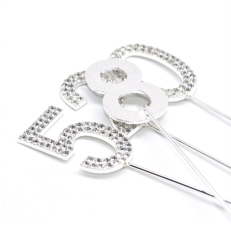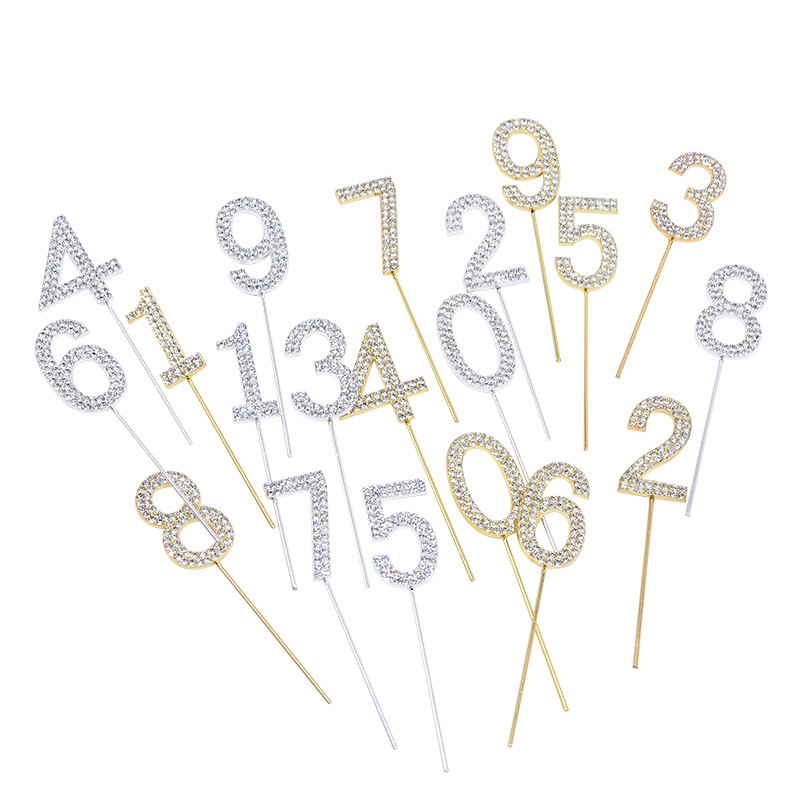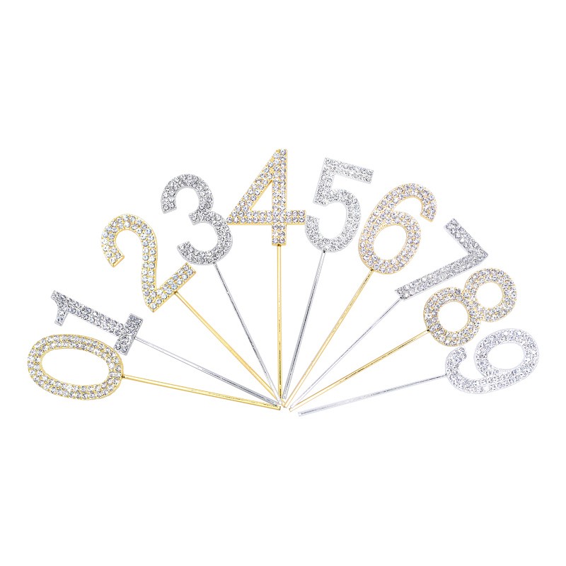 1Pc Glitter Legierung Strass Anzahl Kuchen Topper Baby Dusche Geburtstag Dekoration Hochzeit Gold Silber Digitale Kuchen Dessert Decor