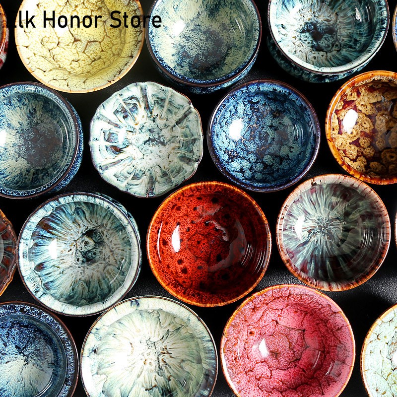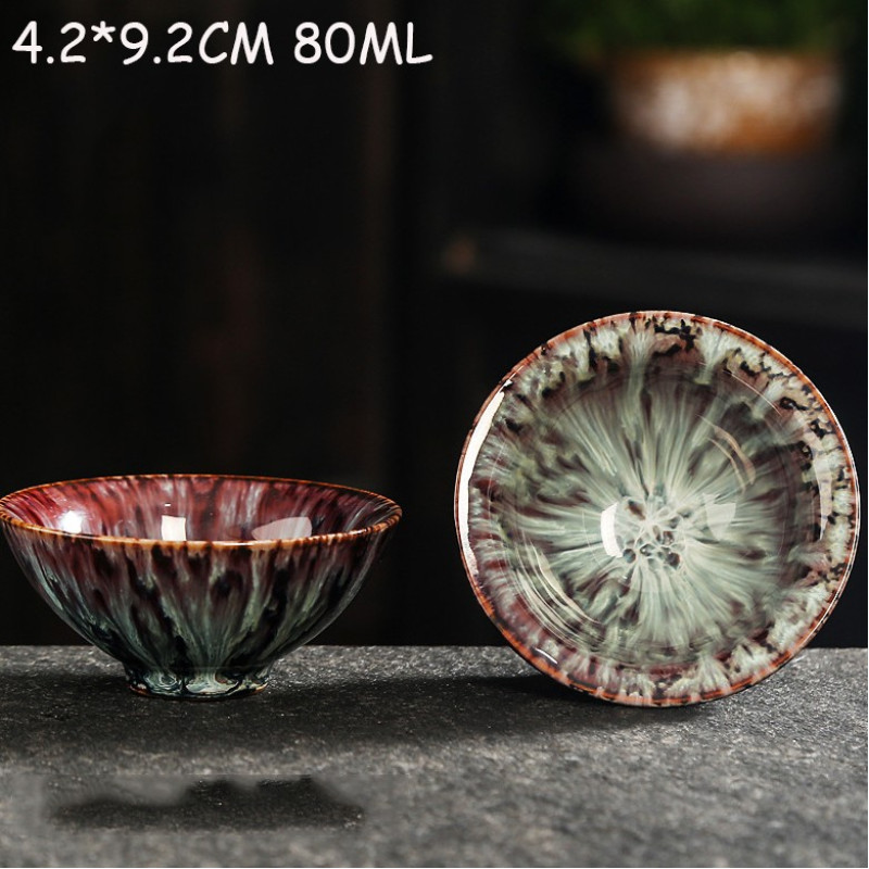 1Pc Multicolor Ofen Fambe Porzellan Tee Tasse Große Kung Fu Temmoku Glasur Keramik Japanischen Master Teetasse Retro Einzigen Tee Tassen