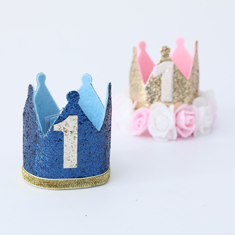 1St Geburtstag Krone Hut Jungen Mädchen Baby Dusche Dekore Neugeborenen Baby Geburtstag Party Dekorationen Rosa Blau Prinzessin Baby Stirnband