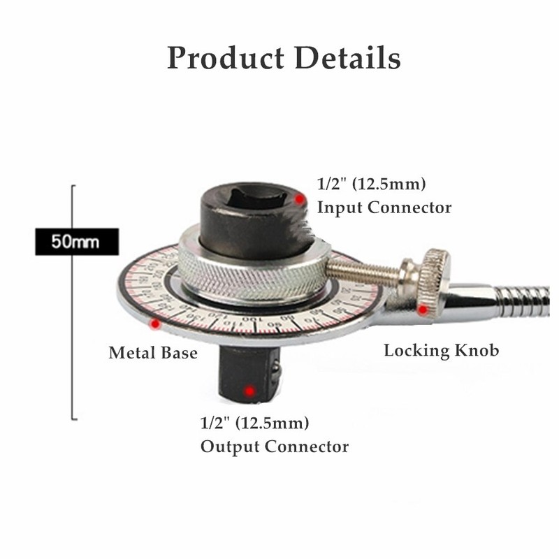 2 In 1 Drehmoment Winkel Meter 1/2 "CR-V Stahl Stick Schlüssel Winkel Gauge Mit 14" Flexible Clip Arm und Magnetische Stecker Einfach Lesen