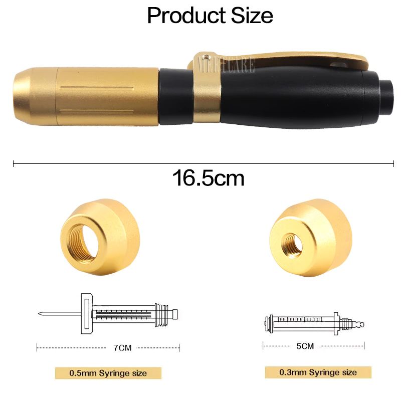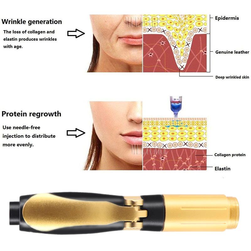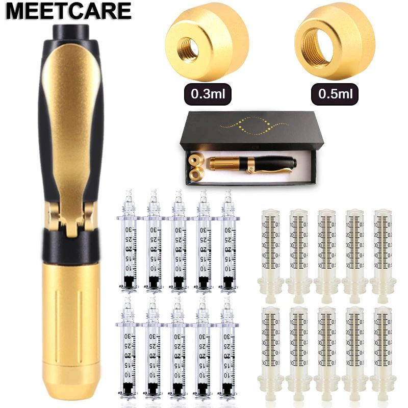 2 in 1 Meso Injektion Pistole Hyaluron Stift 0,3 ml & 0,5 ml Kopf Gold Hyaluronique Säure Stift Lip Füllstoff jnjector Nicht-invasive Vernebler Neue