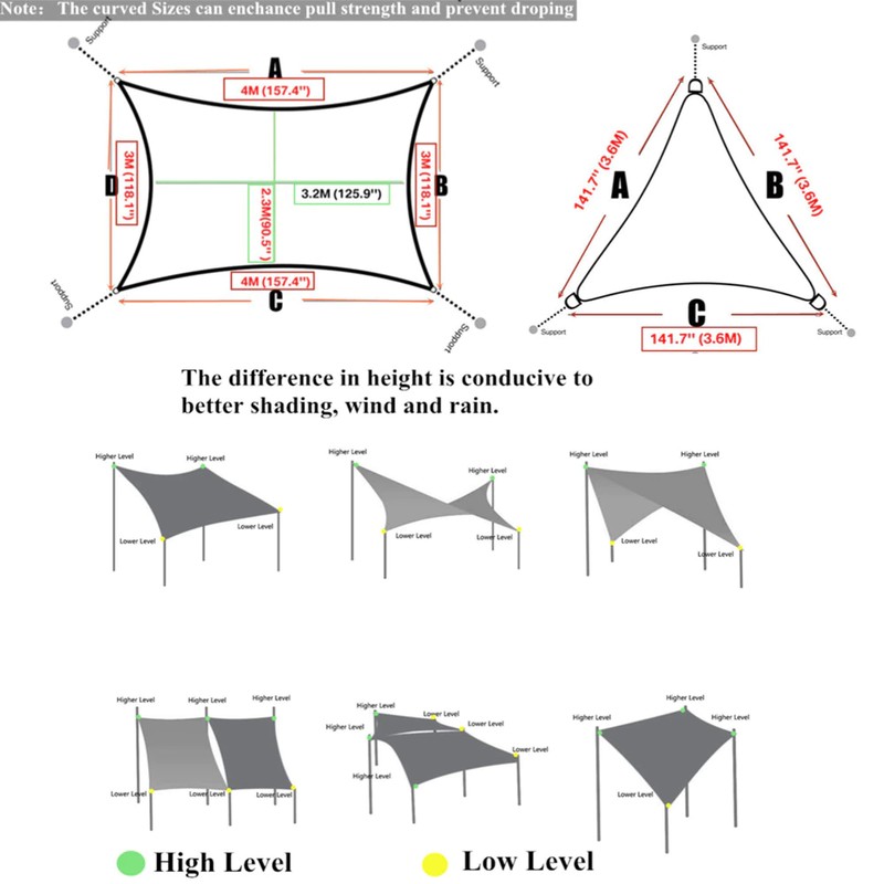 Für Rechteck sonnensegel: 3x2M, 3x4M