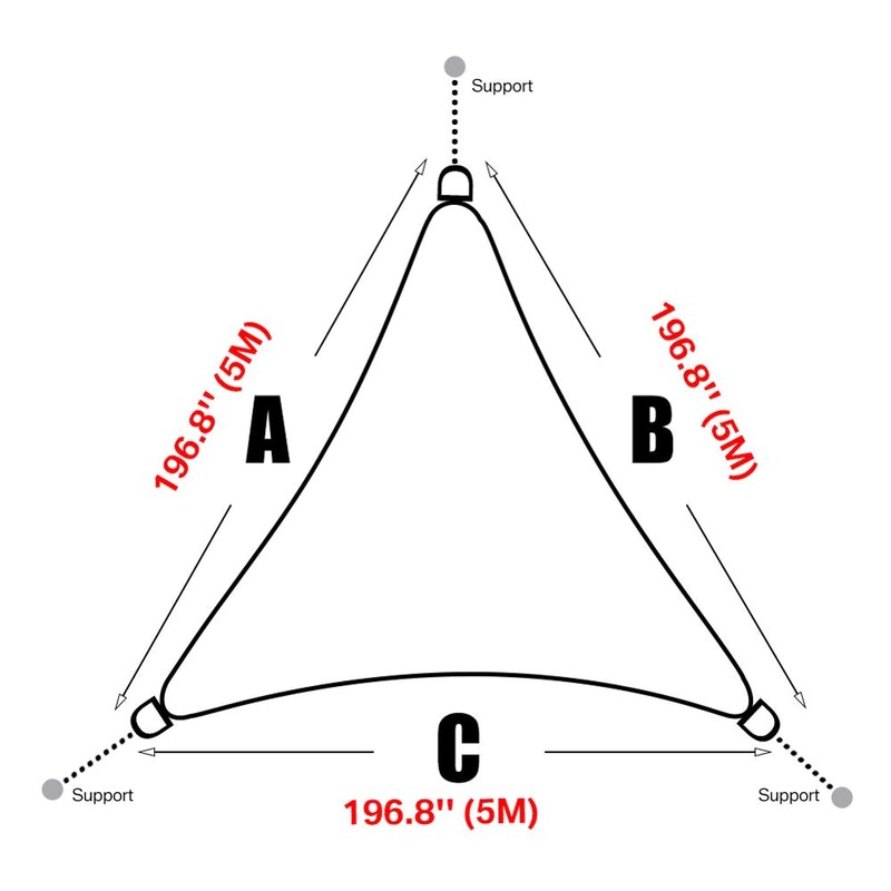 Für Dreieck sonnensegel: 2x2x2M 3x3x3M, 3,6x3,6x3,6 M,5x5x5M