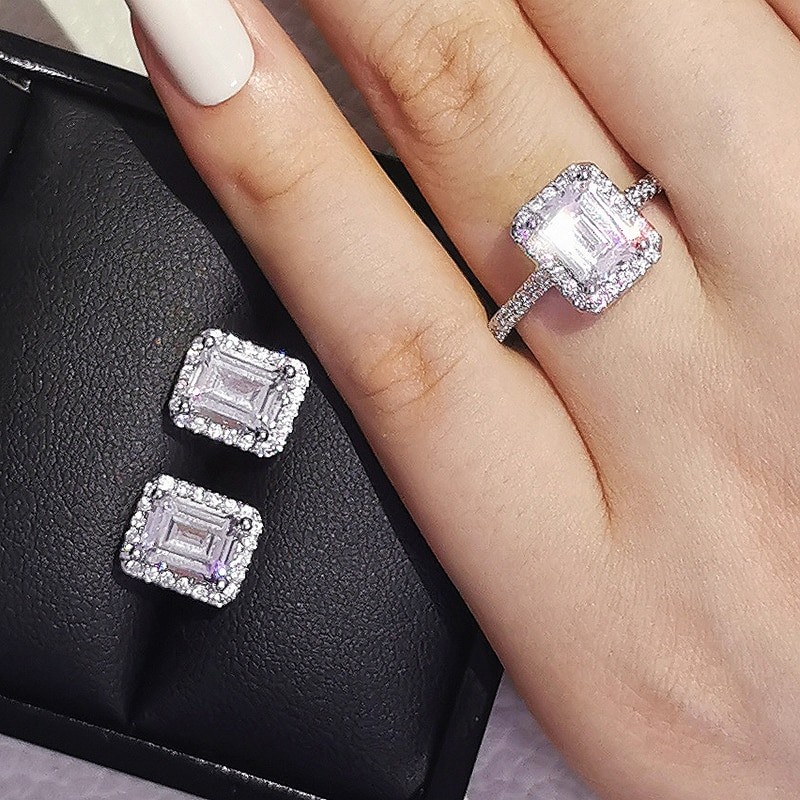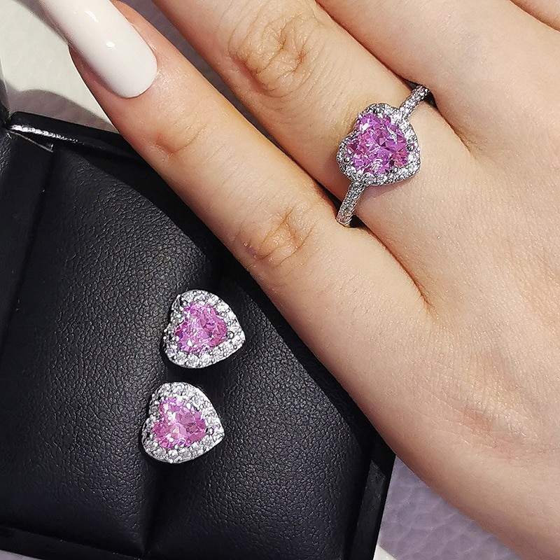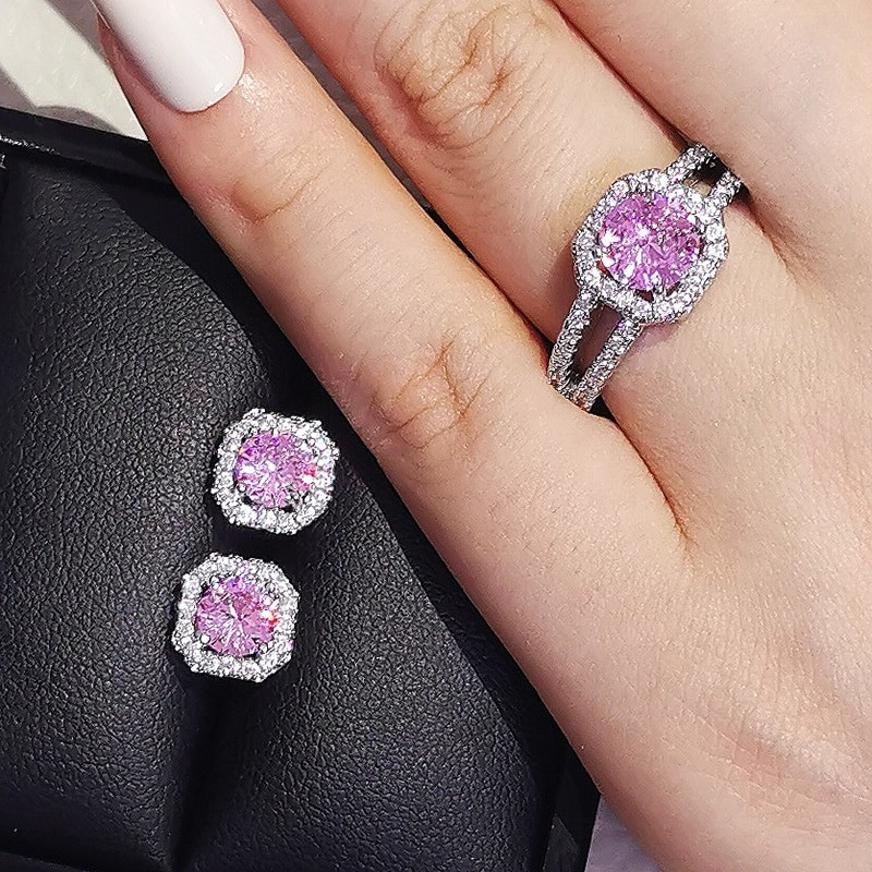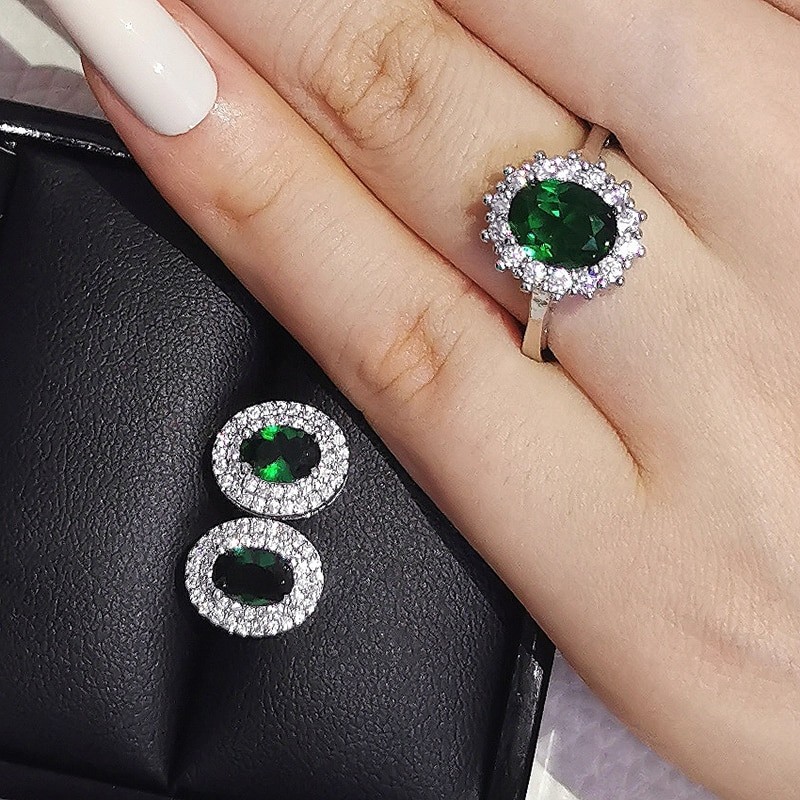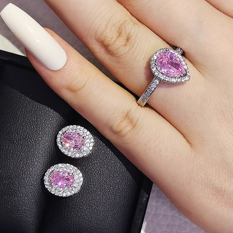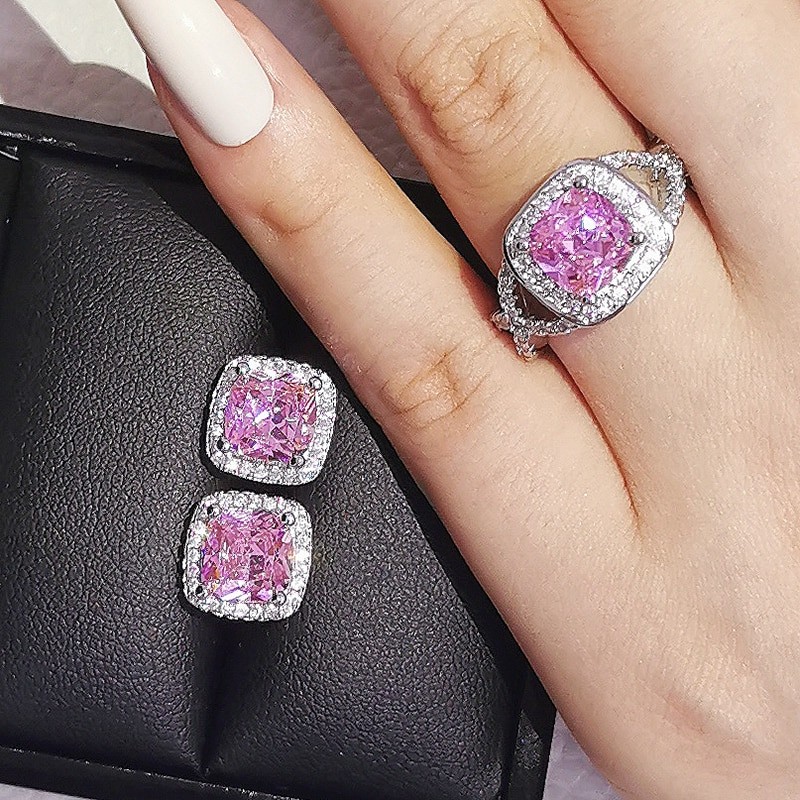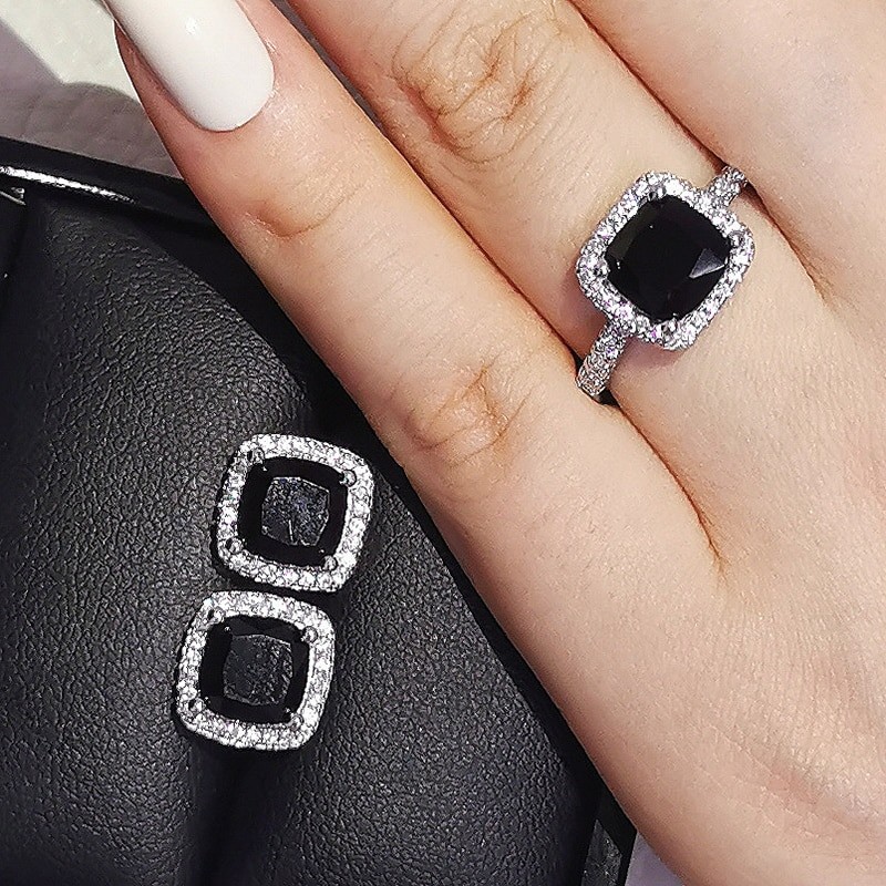 2 Stücke Pro Packung Rosa Schwarz Grün 925 Sterling Silber Schmuck-Set Für Hochzeit Frauen Engagement Ring Stud Ohrring Für Party Geschenk Z10
