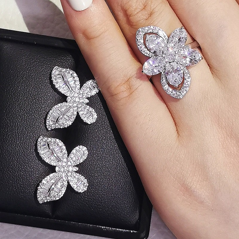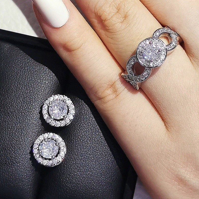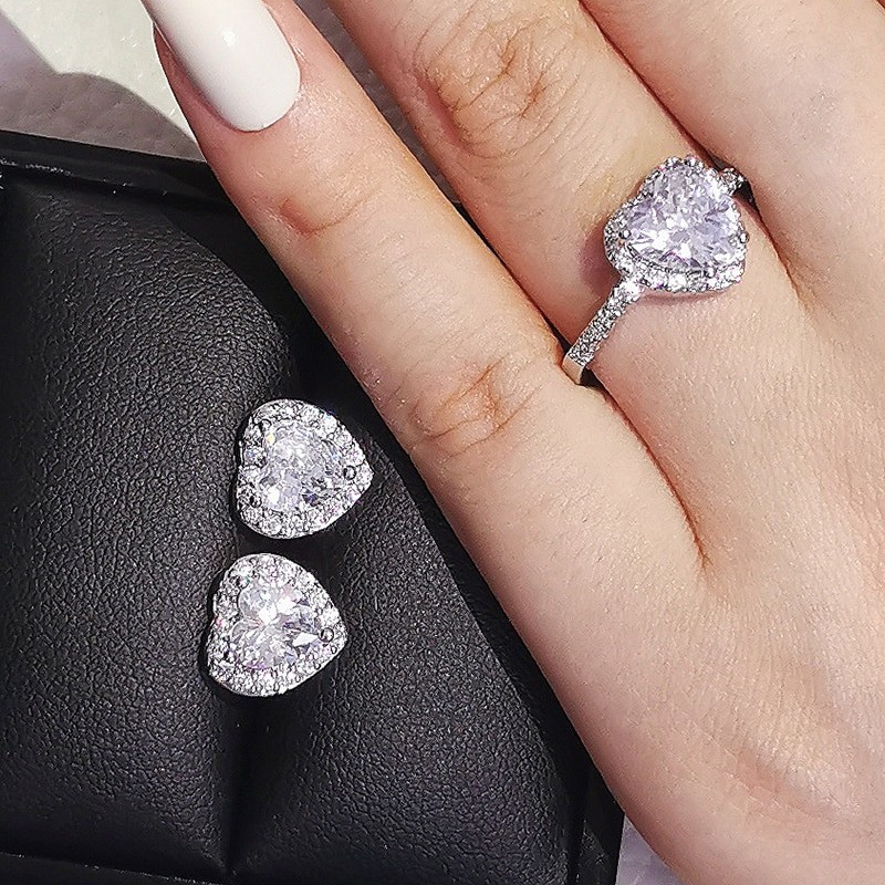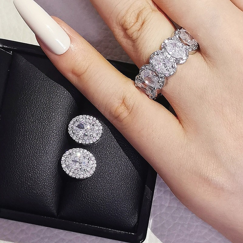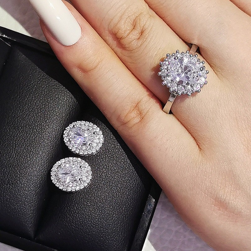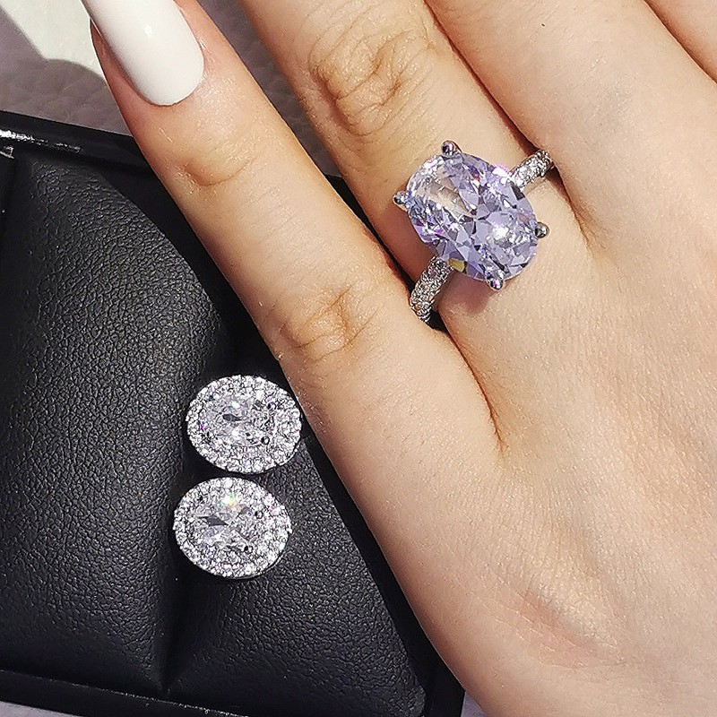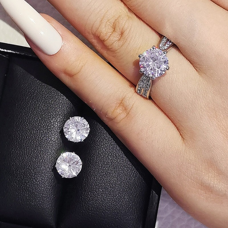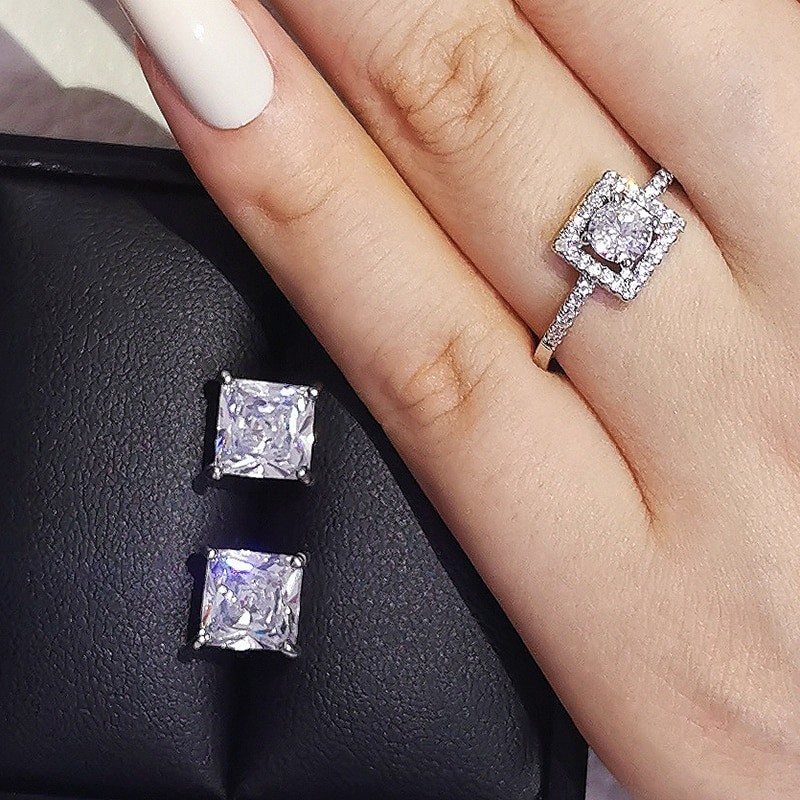 2 Stücke Pro Packung Rosa Schwarz Grün 925 Sterling Silber Schmuck-Set Für Hochzeit Frauen Engagement Ring Stud Ohrring Für Party Geschenk Z10