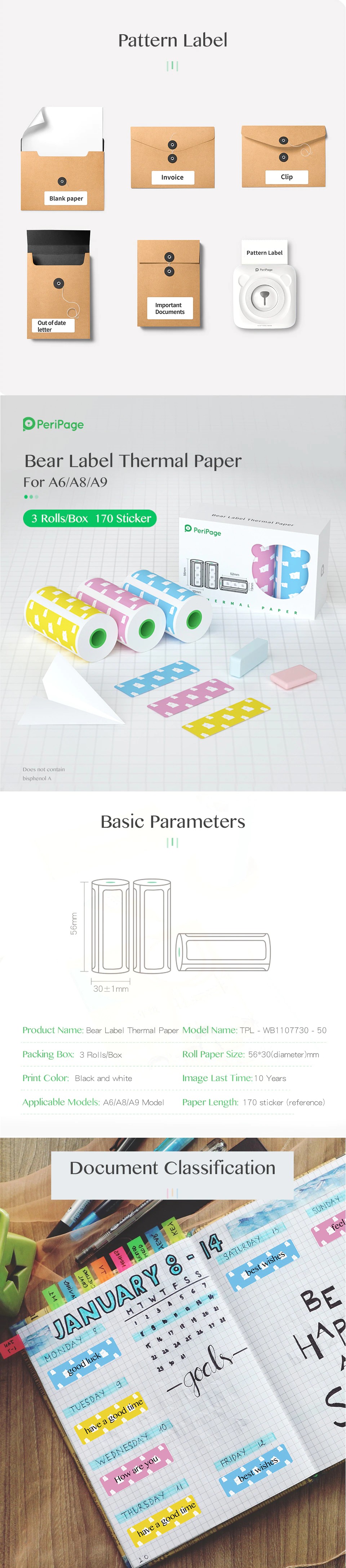 3-12 Rolle Druckbare Aufkleber Papier Rolle Direkt Thermische Papier Selbst-Adhesive 57*30Mm Für Peripage A6 Thermische Drucker Paperang P1/P2