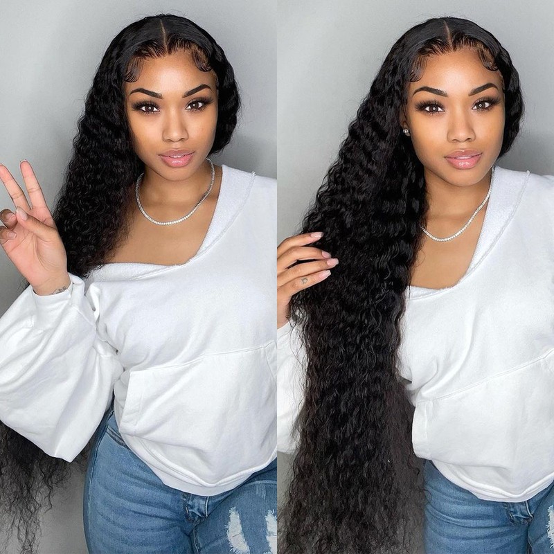Artikel: Lockige Tiefe Welle Spitze Vorne Perücke Natürlichen Haaransatz Mit Baby Haar Lange Menschliches Haar Perücke