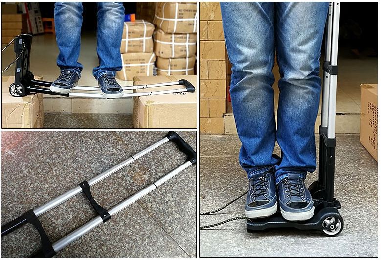 • Die quick release teleskop griff, elastische sicherheit straps und robuste basis platte machen diese reise trolley zuverlässige und einfach zu bedienen. Wenn nicht in gebrauch, es falten flach in sekunden so dass für einfache lagerung.