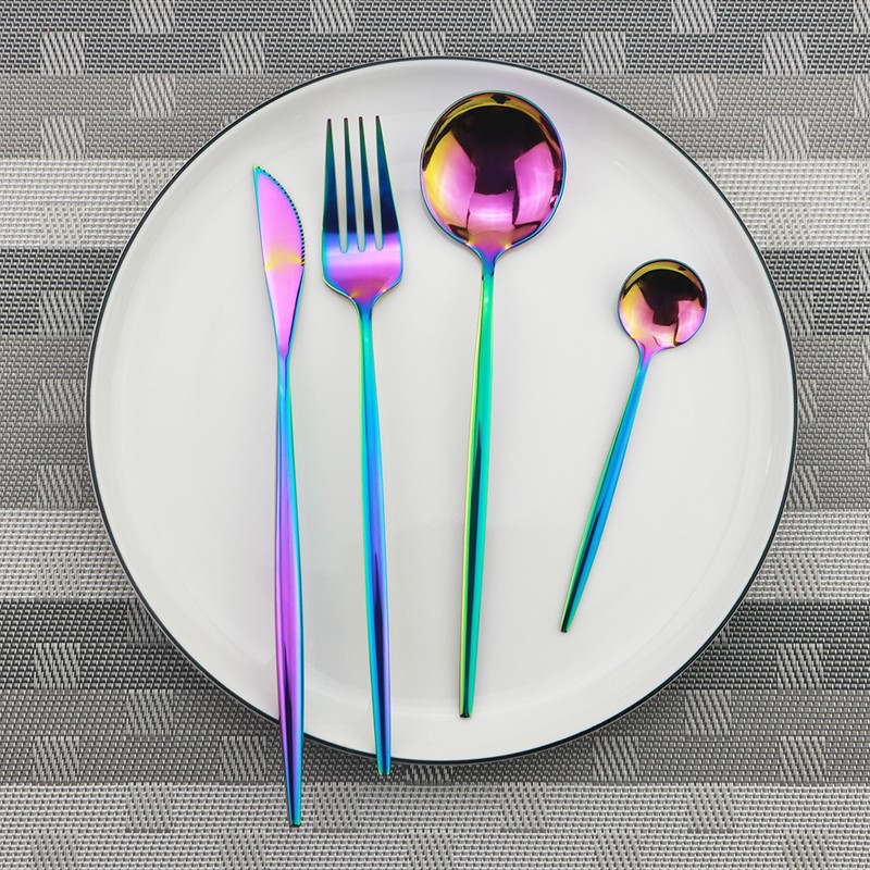 4 Stücke Gold Geschirr Set 304 Edelstahl Regenbogen Besteck Messer Gabel Löffel Teelöffel Geschirr Set Küche Besteck Set