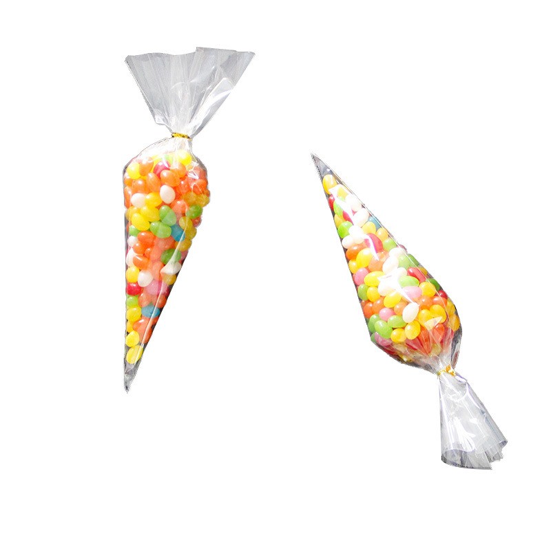 50 teile/los DIY Candy Bag Hochzeit Gastgeschenke Birthday Party Dekoration Süße Cellophan Transparent Kegel Lagerung Mit Organza Beutel