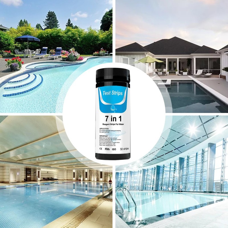 50 Streifen Wasser Test Papier 7In1 Ph Alkalität Nitrit Chlor Brom Kh Gh No2 No3 Härte Teststreifen Für Pool, Aquarium Wasser