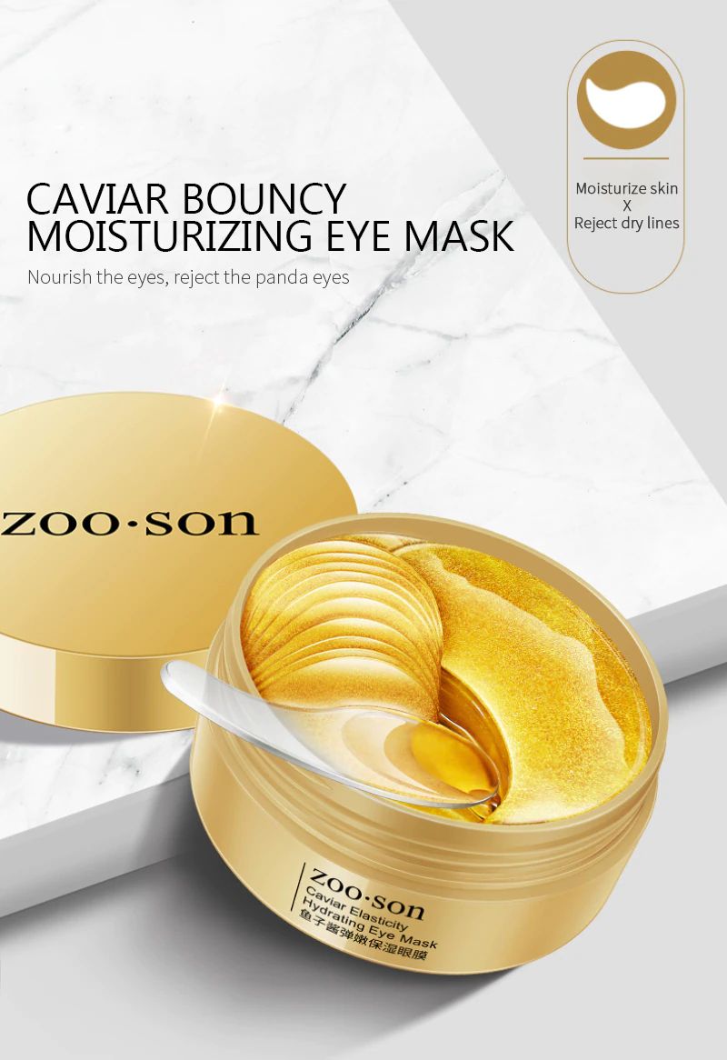 60Pc Gold Caviar Feuchtigkeitsspendende Kristall Kollagen Augen Maske Anti-Falten Anti Aging Auge Hautpflege Patch Verdünnen Feine Linien Maske Tslm1
