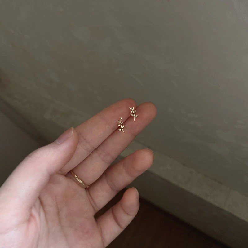 925 Sterling Silber Europäischen Stil 14K Gold Ohrringe Für Frauen Einfache Olive Zweig Blatt Ohrringe Süße Nette Student Schmuck
