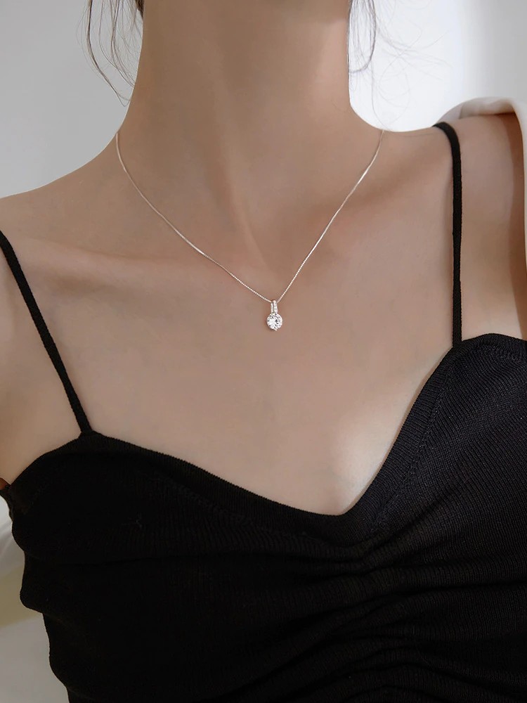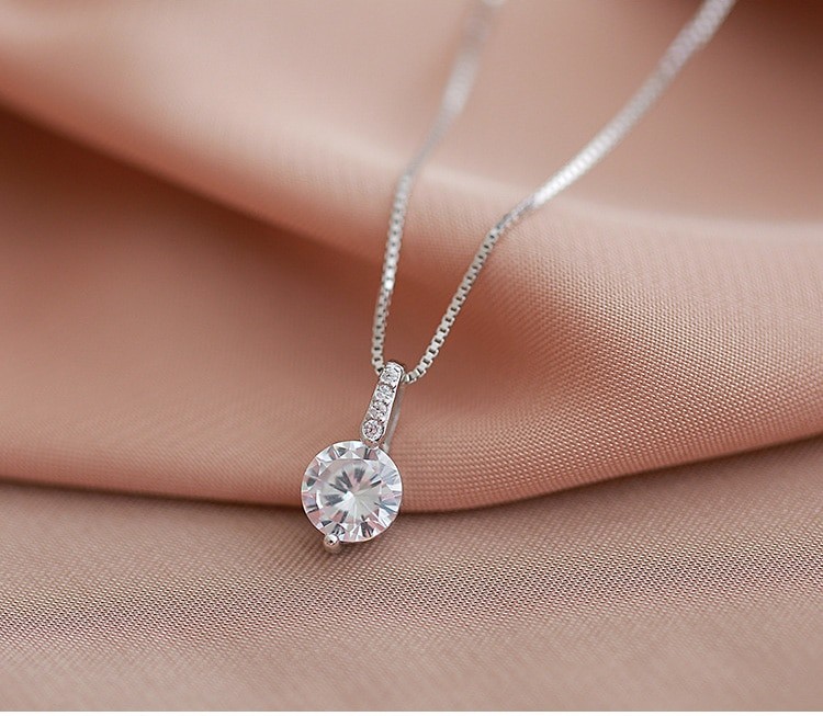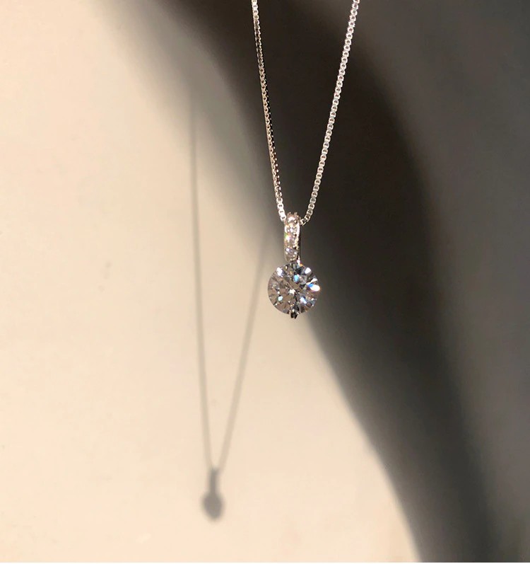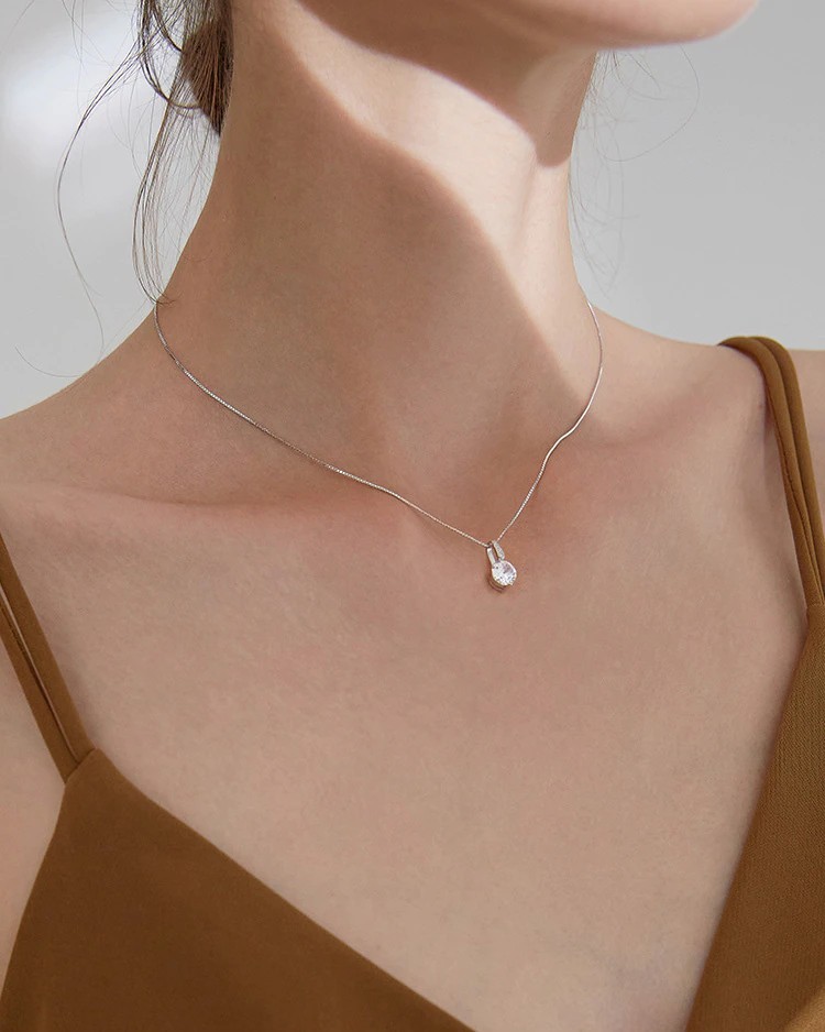 925 Sterling Silber Geometrische Drop Halskette Schlüsselbein Kette Frauen Mode Schmuck Glanz Zirkon Anhänger