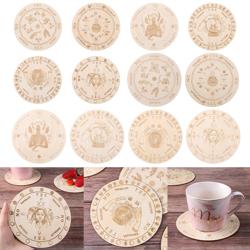 Carven Altar Holz Divination Pendulum Bord Star Sun Moon Laser Cut Scheibe Holz Basis Untersetzer Wand Zeichen Decor Hexagonal Spitz