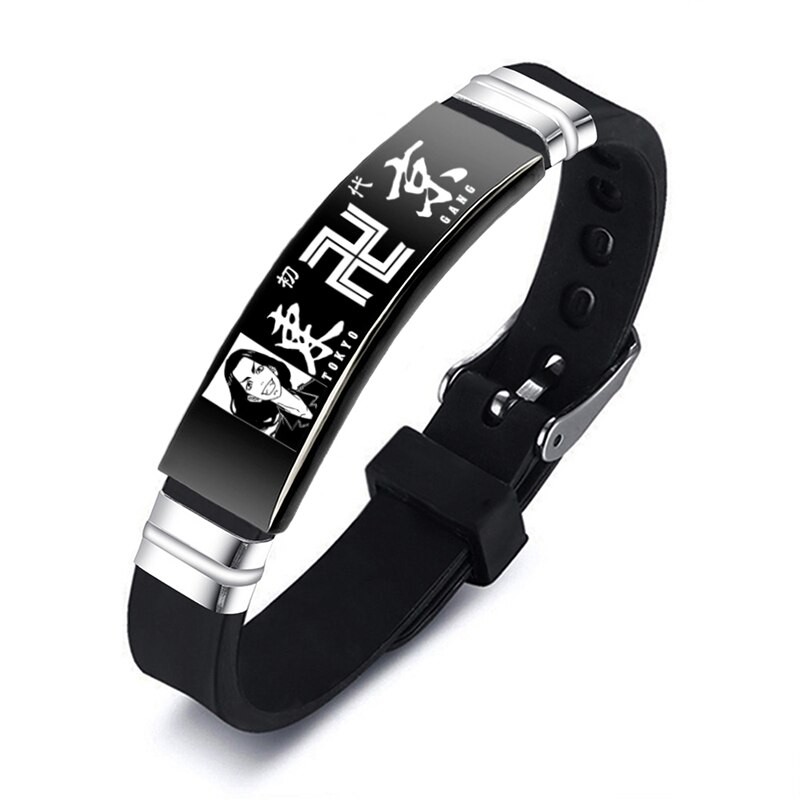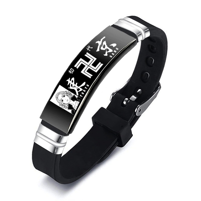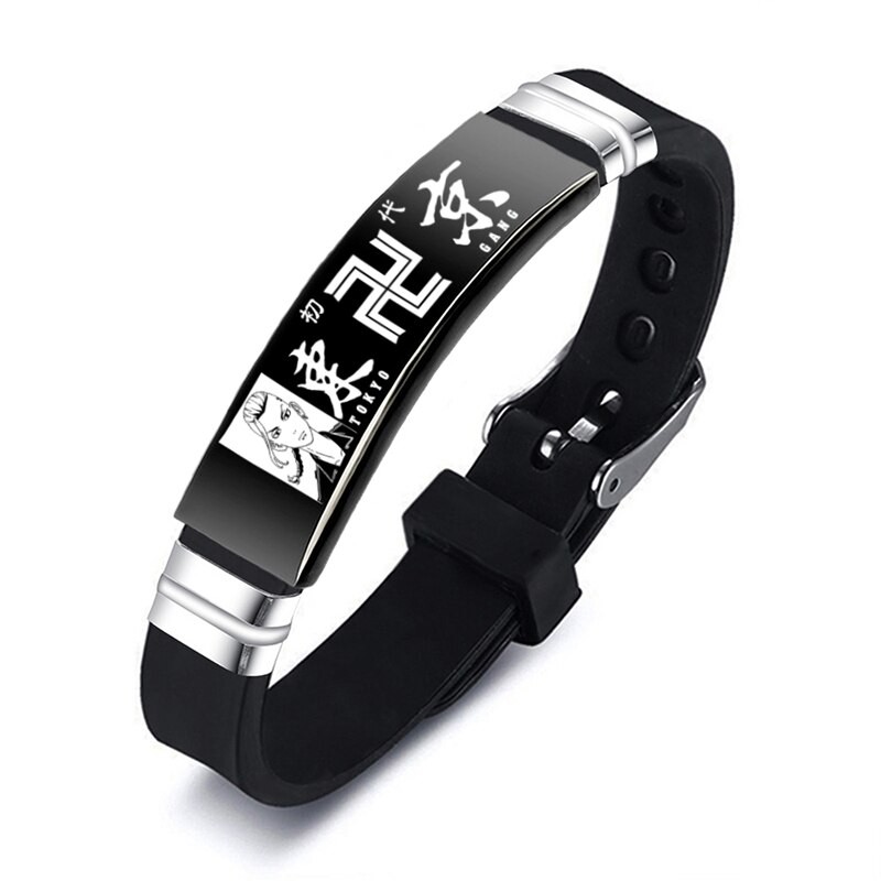 Anime Tokyo Revengers Armband Eingraviert Schwarz Edelstahl Sano Manjirou Hanemiya Kazutora Einstellbare Silikon Armbänder